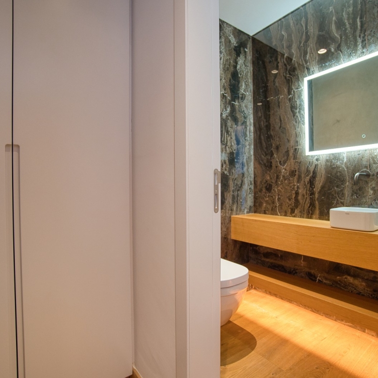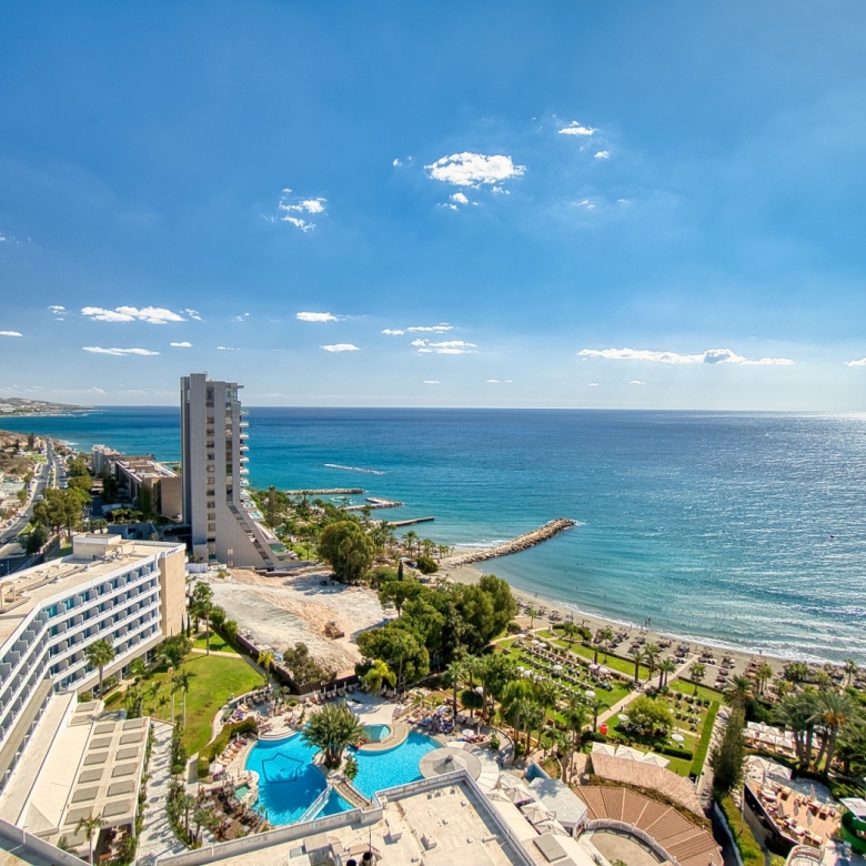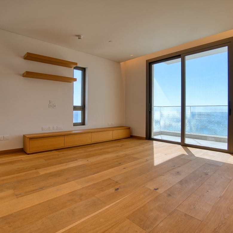 Front line 3 bedroom 3 bathroom penthouse are ideal for families seeking a home that is both comfortable and spacious, with an abundance of luxurious flourishes. Living areas are generously spread out to allow for ultimate maximization of space. The open-plan layout creates an airy ambience and free flow of movement throughout the residence. Large, floor-to-ceiling windows extend out onto ample balconies that serve up gorgeous views of the Mediterranean Sea just below, and let in an abundance of natural light. Every corner of the three-bedroom apartment is meticulously designed to create a space that is both aesthetically pleasing and highly functional. Warm wood elements and soft hues invoke a sense of tranquil pleasure that is perfectly suited to island living.
