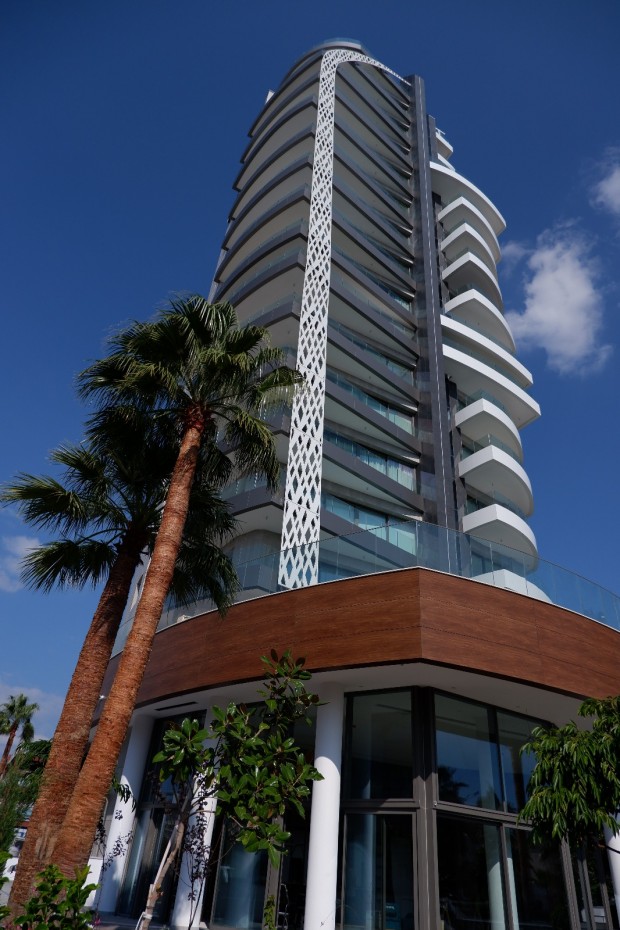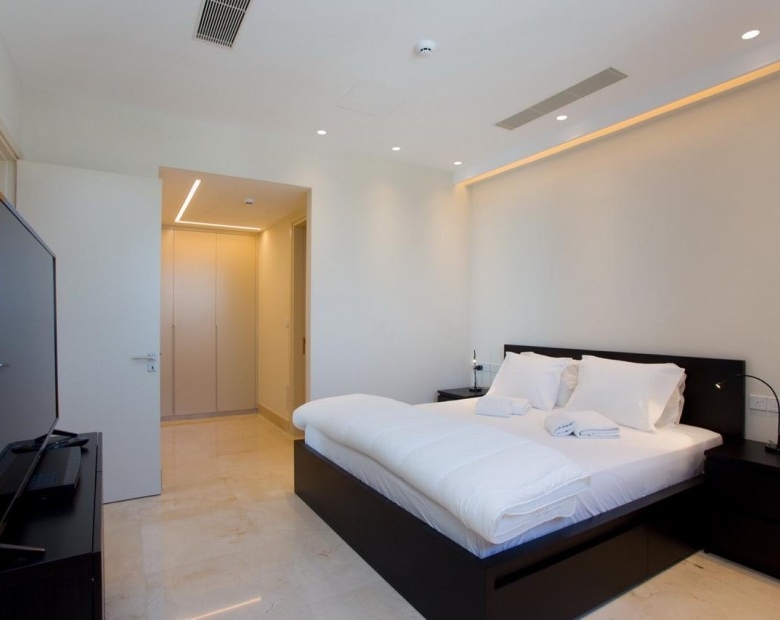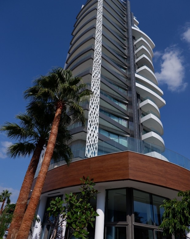 A brand new front line 3 bedroom apartment for sale in Mouttagiaka, Limassol. It is located on the 6th floor of an 18 storey building right on the beach with panoramic sea views. The apartment is fully furnished with high end finished and equipped with underfloor heating, VRV air-conditioning and a smart home system. Some luxuries the apartment offers is a pool, gym, and spa. There is 5* hotel facilities with a 24hr reception, concierge desk and top of the line restaurant in the building.