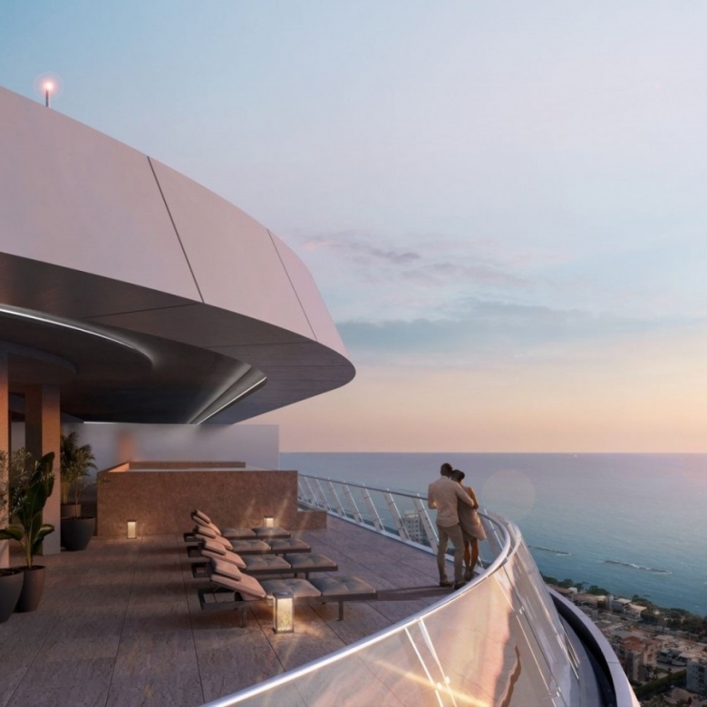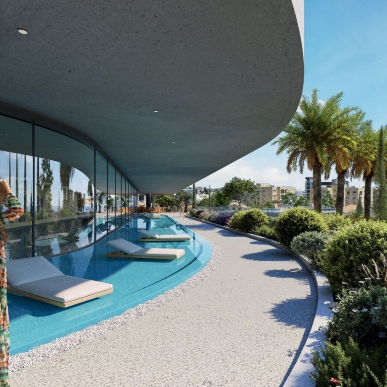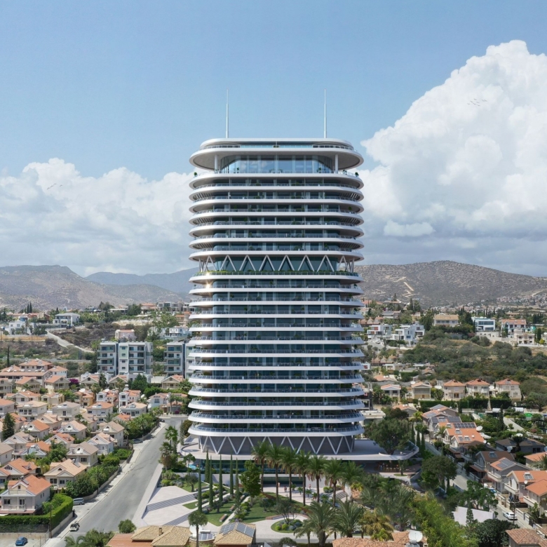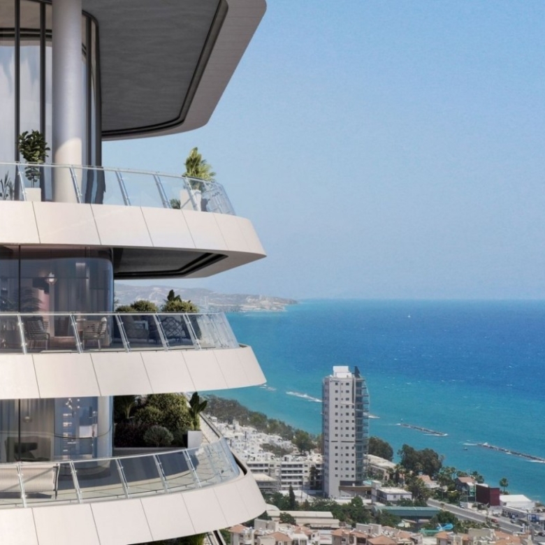 Located in one of the best areas of Limassol, 200m from the sea, a luxurious high-rise residential project spanning vertically over 25 storeys. Set to be completed in 2025, the project is designed to resemble a floating structure above the waterfront, welcoming those who long to reside in a fully integrated urban development with style and highest specifications. Using lightness, transparency and luminosity as an architectural language, attempting to blend sky, sea, and ground seamlessly. It uses reinforced concrete structure, bricks for internal walls, glass, wood, and introduces luscious landscaped areas both with its gardens on the ground floor as well as the 16th level Executive floor/Sky Garden/Restaurant, to enhance the tranquil atmosphere created for the residents. The vast variety of communal features that have been accommodated within the design in order to serve the residents only reinforce this sense of luxury. The linearity in the geometry of the square, which spans over 1600m2 directs the visitors towards the building while accentuating its connectivity to the seafront. Upon entering into the 3000m2 private gardens, the residents are surrounded by the synergy of the different elements; the water and rich landscaping along with private and protected recreational space. The elevated, external 25-meter swimming pool, acts as a focal point around which the private spaces develop, working as a continuation of the square’s geometries, creating a connection between the lower entrance levels of the development. The large indoor heated swimming pool adds up to the amenities of the project. The Wellness & Spa zones that are directly adjacent to the main Swimming pool area, encompass numerous amenities for the residents to enjoy. An absolutely unique feature is it comprises two lounge/barbeque areas at each residential floor (except the penthouses) with centralized extraction system and all facilities. All 65 apartments and 2 magnificent penthouses of the project were carefully designed in order to enjoy uninterrupted sea views, providing that sought-after luxury island lifestyle. The internal finishes are all hand-selected as part of exclusive finishes encompassed within the project. Natural marbles and granites, top niche wood flooring and Italian kitchen and wardrobes dress the internal of the properties. The three level penthouses located on the top floors of the building, offer exclusive 360 views of the city, private roof gardens as well as private infinity swimming pools. Combining a wide range of luxury features and amenities, becoming a flagship to the island, and the place to live. The apartments offer the ultimate in calm, elegance and simplicity of leading contemporary design, while providing spectacular views across the sea and Limassol skyline.Covered veranda includes covered sun deck 287.1 sq.m. and covered roof terrace 113.1 sq.m. Uncovered veranda includes uncovered roof terrace 422.2 sq.m.