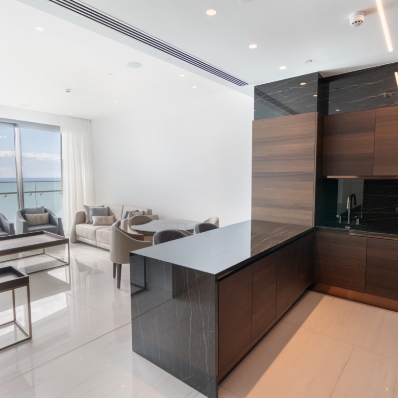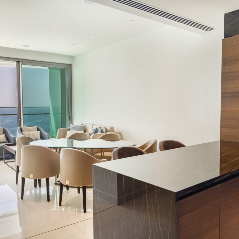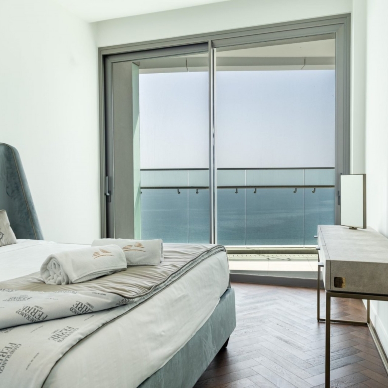 A Seafront apartment that enjoys breathtaking views of the Mediterranean Sea at every angle. Being part of an impressive project, it expresses the island’s ‘new wave’ of architecture through its unique high-rise curvilinear design, which fully capitalizes on the plot’s 170 metres long sea frontage.