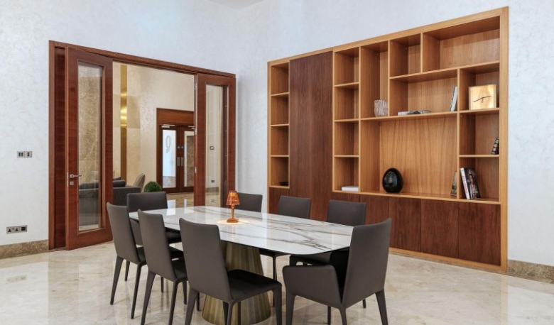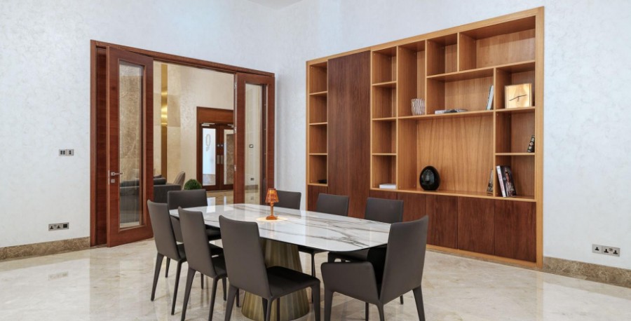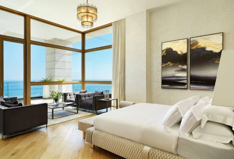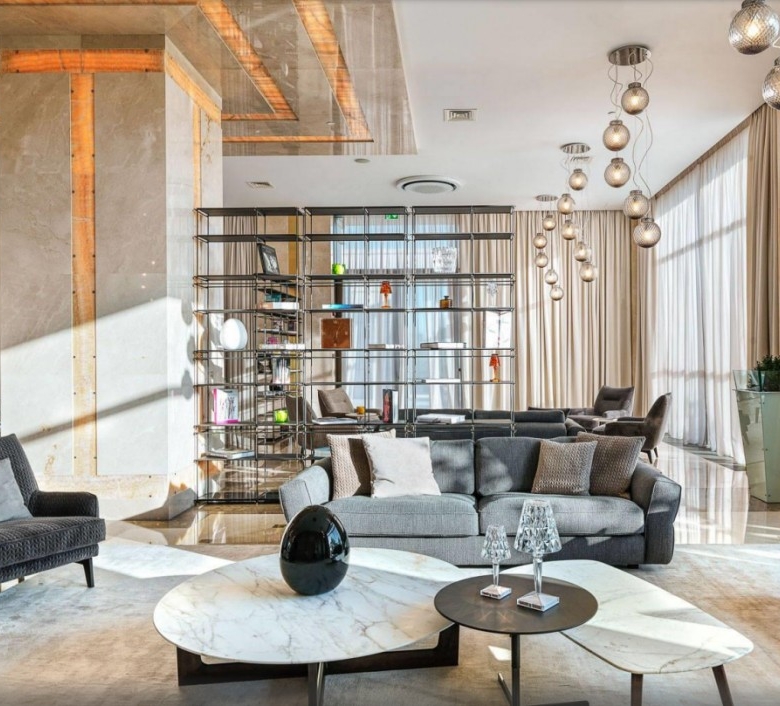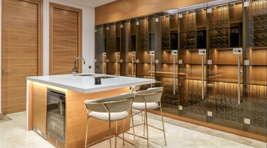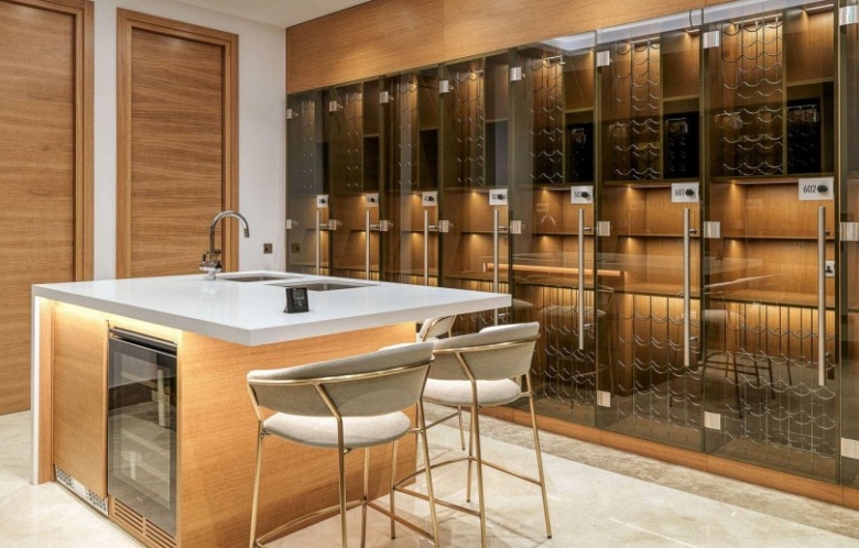 Embracing the timeless charm of stone mansions and castles, the exterior radiates enduring beauty designed to stand the test of time. Crafted with sustainability and durability in mind, the low-maintenance stone façade is not only elegant but will also last for decades to come. Spanning 700 m2 of indoor space and complemented by a 70 m2 outdoor veranda, the lobby offers an inviting lounge area adorned with a piano and a fireplace, and includes a meeting room and a wine cellar. Enchanting residents with its lavish allure, it is the perfect setting for private gatherings and social events.