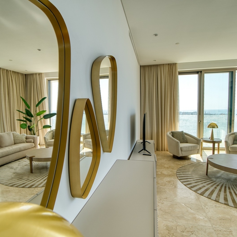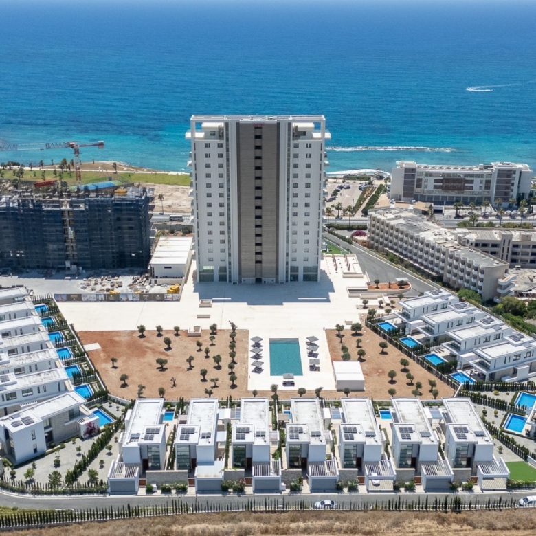 Unique residential resort and a celebrated Paphos landmark located at the city’s most privileged waterfront location. Consisting of two towers – the residential West Tower with 15 floors and the under-construction 5-star hotel chain on the East Tower with 16 floors – this resort is set to be the highest building in the city. Interior elements encompass high-quality materials and elegant finishes to combine maximum design with exceptional technical performance. Each of the 50 fully furnished and turnkey-equipped apartments will have its terrace, where residents will be able to enjoy the unobstructed sea views, the golden Mediterranean sunsets, and spend quality time with family and friends. The residences accommodate a gym, a spa, a swimming pool, sports facilities, a park, a playground, and stunning gardens – all essential commodities that invite relaxation and a comfortable lifestyle. Additionally, the resort will be surrounded by luxury hotels, nightlife, schools, universities, and hidden gems to be discovered. The breathtaking views of Paphos seafront, the harbor with its picturesque castle, and the panoramic views of the vibrant city add the perfect lasting touches to an already stunning project.