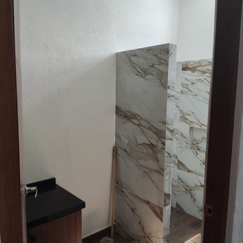 Large bedroom with a full bathroom, dining room stay and comprehensive kitchen equipped with granite bar, half bathroom, washing room.