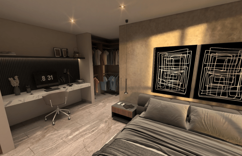3 parks with different themes, an exclusive club house, walkers, water mirrors, access booth with automated feathers and green areas attached to the “green spine” that connects the entire macro-development.
