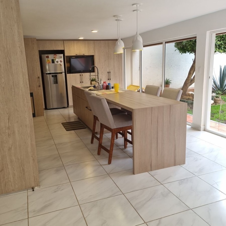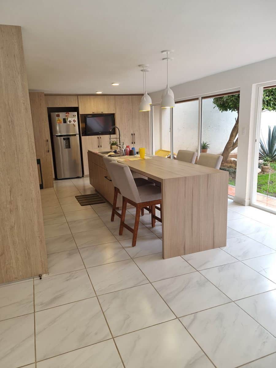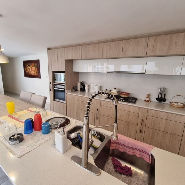 Beautiful residence surrounded by green areas, has 3 bedrooms, wide room-dining room, equipped and newly remodeled kitchen, 2 and a half bathrooms, independent room and washing room with full bathroom and parking with capacity for up to 12 cars.