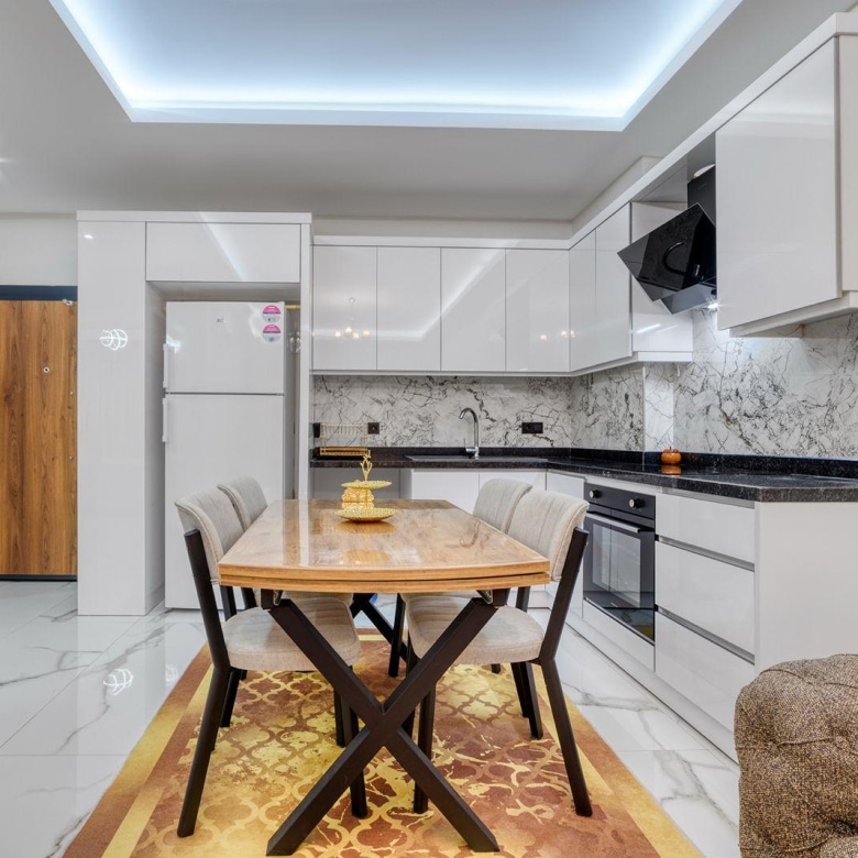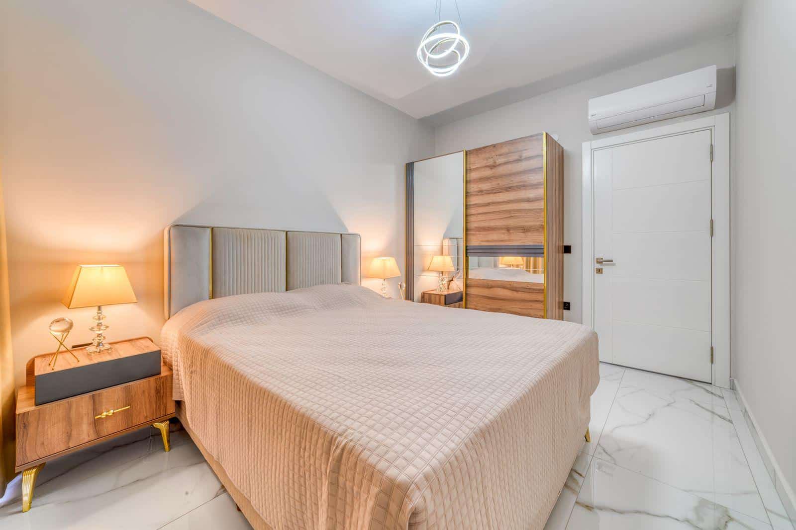 The villa’s features are designed to cater to the most discerning tastes. Enjoy a refreshing dip in the private swimming pool, relax in the meticulously landscaped garden, or take advantage of the convenient car parking facilities. The villa’s strategic location not only ensures peace and quiet but also provides easy access to Alanya’s vibrant cultural and social attractions, all while being enveloped by the lush greenery and clean air of the surrounding pine forests.