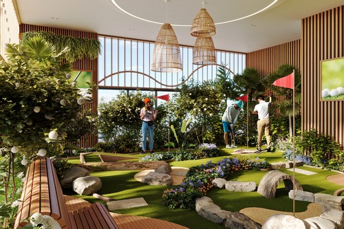 Inspired by the celestial beauty of the Electra star in the Pleiades constellation, this architecturally striking tower is designed to offer breathtaking views of the lush green golf course and cricket stadium.