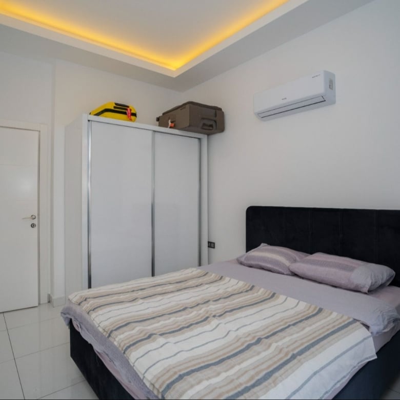 Step inside and be captivated by the spacious 90 m² layout, thoughtfully designed to maximize comfort and functionality. This fully furnished apartment features two beautifully appointed bedrooms, two modern bathrooms, and two expansive balconies, perfect for savoring morning coffee or evening relaxation. The open-plan living area is enhanced by a state-of-the-art climate control system, ensuring year-round comfort.