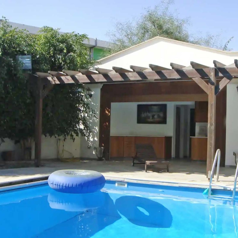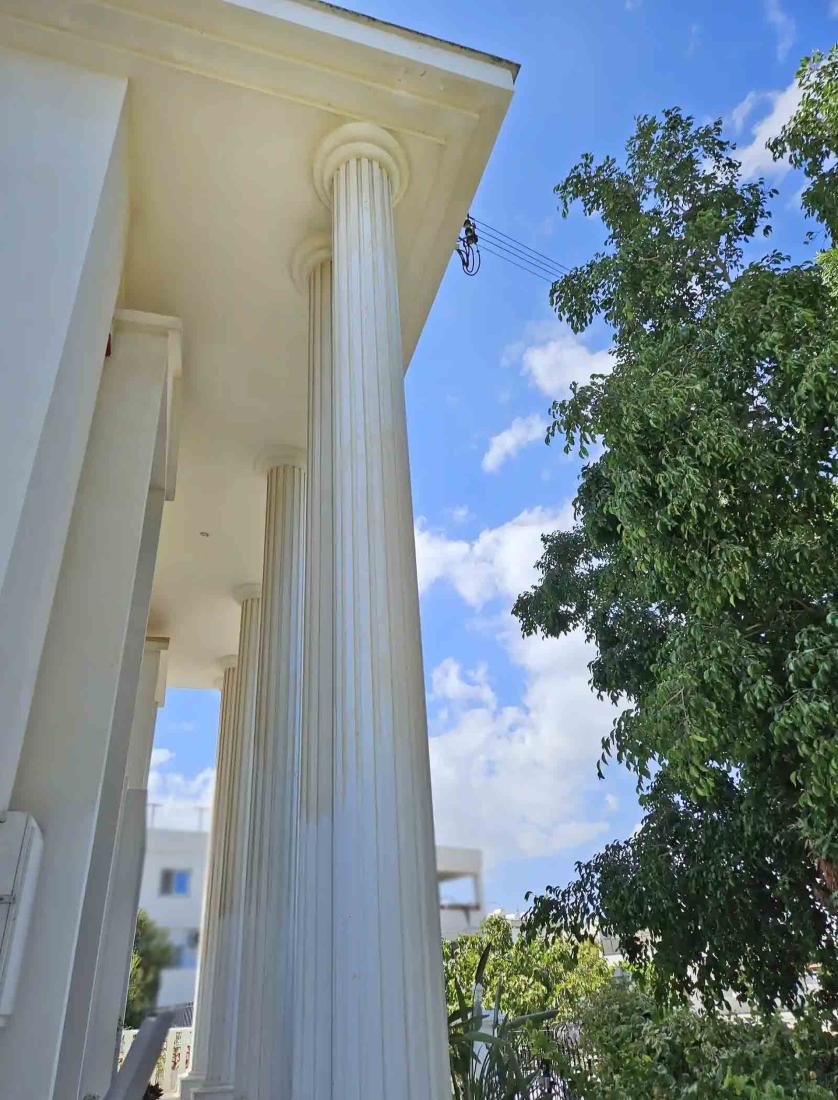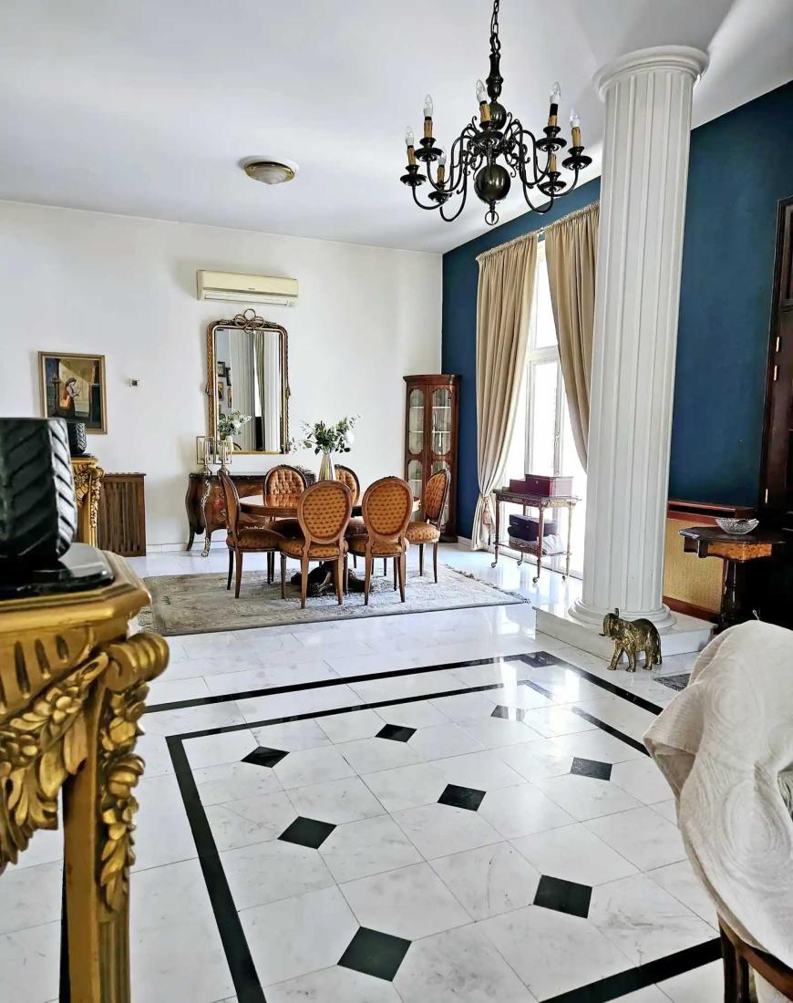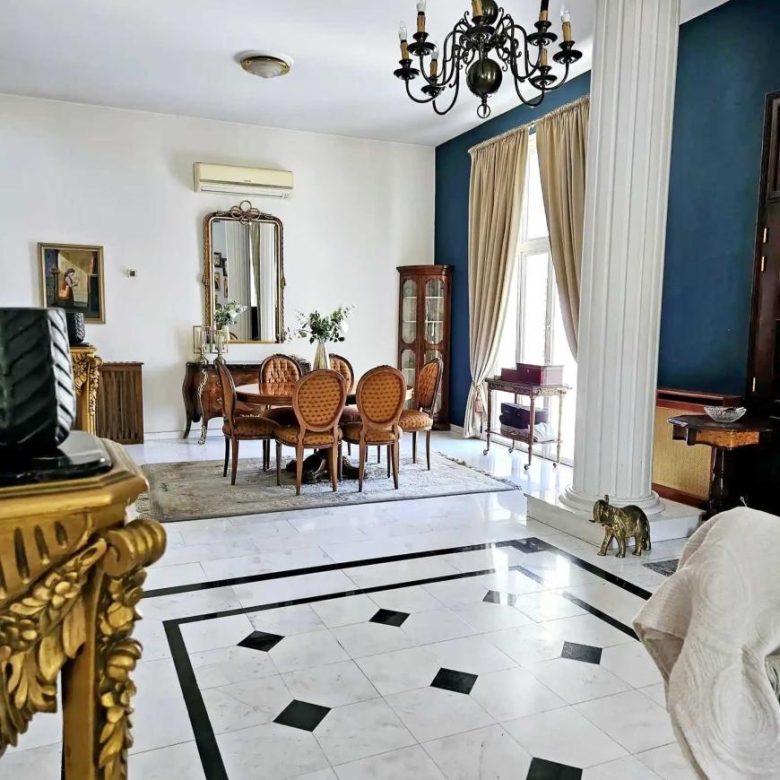 This luxurious residence is located in one of Larnaca’s most exclusive and safest areas, offering privacy, proximity to the airport, and views of a park and salt lake. The house is 1050m² across three levels and sits on a 939m² plot. The basement includes three large offices, a workshop, a bathroom, two WCs, a domestic staff room with a kitchen and shower, and a gym. The ground floor features an open-plan living room with access to the garden, pool, Jacuzzi, and pool house, as well as a kitchen, dining area, and storeroom. It also contains a private apartment with its own entrance, living room, kitchen, and large bedroom with en suite bathroom. On the first floor, there are four bedrooms. The master bedroom has a dressing room, en suite bathroom, and private terrace. Two other bedrooms also have en suite bathrooms, while the fourth shares a bathroom. An office area connects to a large veranda with park views. The home is equipped with air-conditioning and central heating throughout.