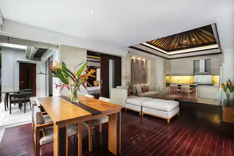 The elegant villa offers 1 spacious & stylish bedroom suite, fitted western kitchens with indoor dining areas, while generously scaled living areas lead out to a private 10-meter lap pool sat in mature tropical gardens. Ideal for entertaining as well as relaxing in a beautiful, tranquil environment, this iconic property is strategically located within Jimbaran’s most luxurious residential estate, just a stone’s throw from the pristine golden sands of Jimbaran Bay.