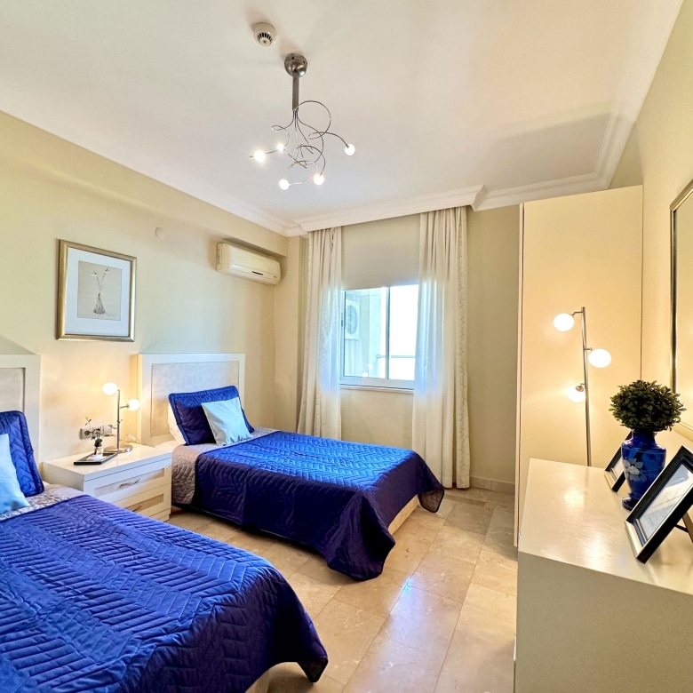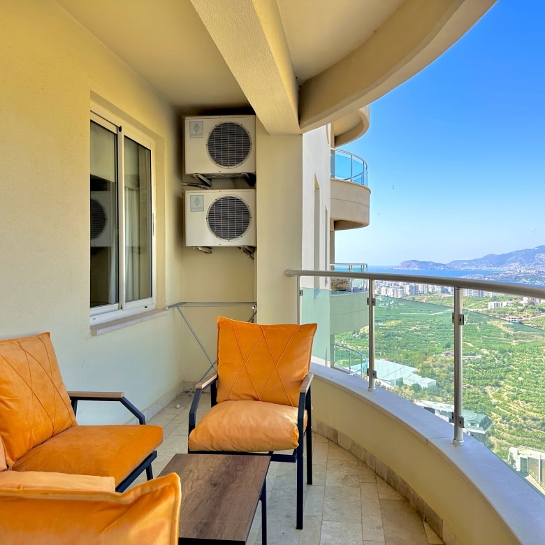 The apartment offers 115 m² of interior space over two floors, including 2 bedrooms, 2 bathrooms, and 2 balconies with open views of the sea, mountains, and city. Delivered unfurnished — a perfect blank canvas for you to personalize your dream home in Alanya.
