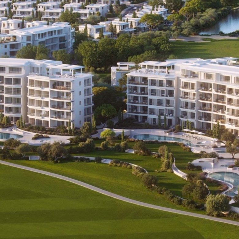 Modern riverside living, conceived with a keen eye for sustainable design and a seamless connection to the outdoors, is exemplified by this high-end architecturally designed residence in stunning surroundings. This spacious 3 bedroom apartment features a private garden of over 110m², perfect for relaxation and entertaining. Located in the heart of the resort, it’s just a minute’s walk from The Village and The Clubhouse. The elevated position offers unparalleled views over the golf course, Salt Lake, forest, and sea. These outstanding apartments provide articulated outdoor living spaces, while chic and practical interiors feature carefully crafted layouts that maximize interior spaces. Enjoy the luxury of a beautiful 30-meter swimming pool, complete with a sundeck and outdoor lounge.