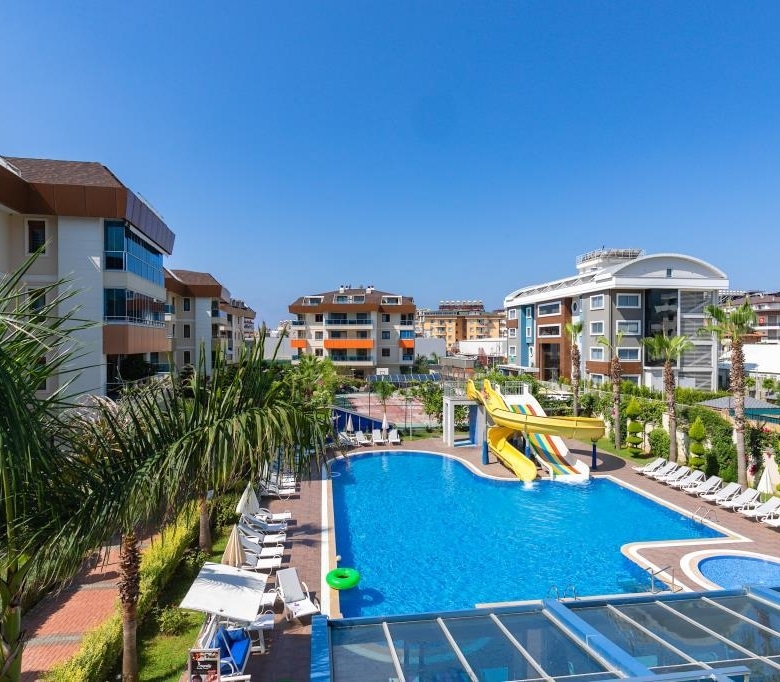 Located in the heart of Alanya’s beloved Oba district, this elegant 2-bedroom apartment offers more than just living space — it offers a lifestyle. Just 800 meters from the sea and surrounded by daily conveniences, this property is nestled within the reputable Trio City Blue complex, known for its well-kept gardens and hotel-style amenities.