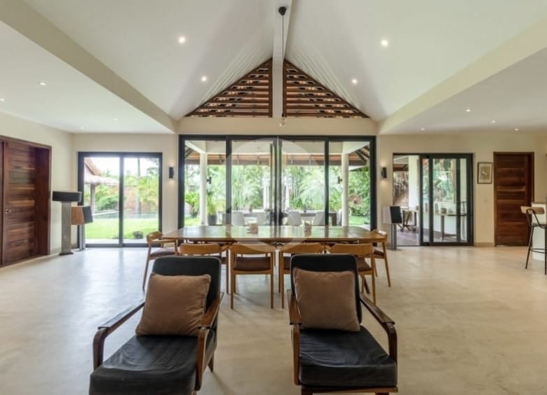 Set on a spacious 1,400 sqm property, the estate includes a main villa (350 sqm floor area) with five (5) bedrooms, a private infinity swimming pool, lush tropical gardens, and even a charming wooden guest house, creating a well-rounded sanctuary for family living or tranquil getaways.