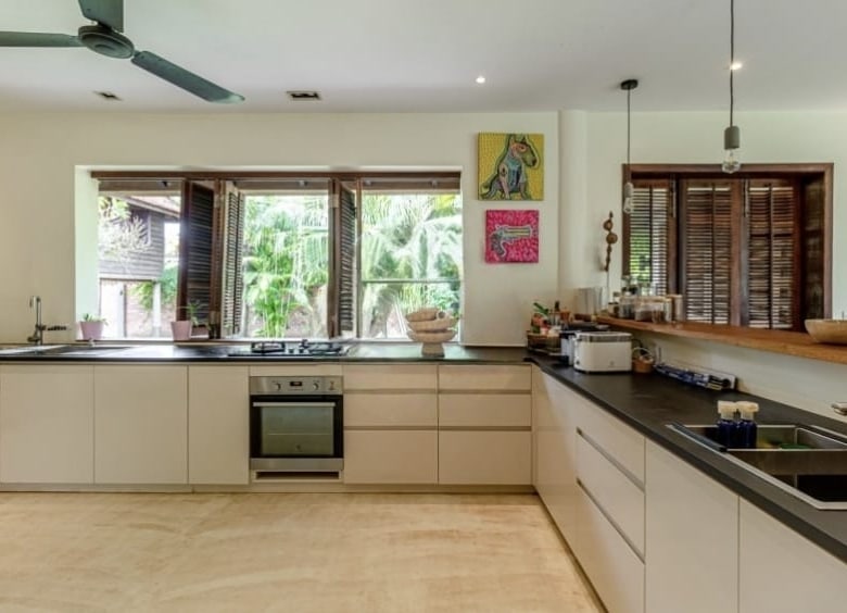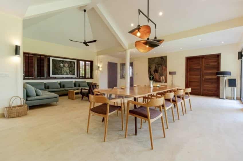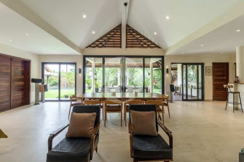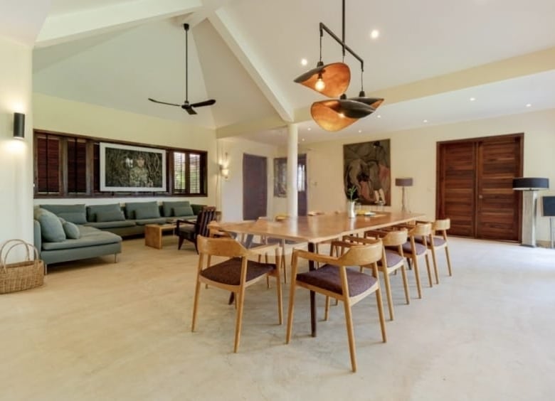 Open-Plan Living Area: Spacious lounge, complete 10-seater dining setup, and peninsula-style kitchen with sink, cooker, oven, and pantry all built in for efficiency.