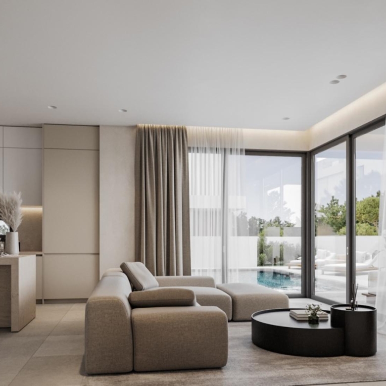 This extraordinary 3 bedroom villa is located in Kapparis, one of the most secluded areas of the greater Protaras. It is conveniently located just a short distance from the centre and the tourist resort whilst offers direct access to Blue Flag Awarded beaches. The project consists of 11 three and four bedroom beautiful villas with a minimalistic design offering a private swimming pool, parking space and a spacious roof garden overlooking the magical Mediterranean sea! The outdoor space of this villa has been given as much priority as the interior, offering a true sense of effortless living!