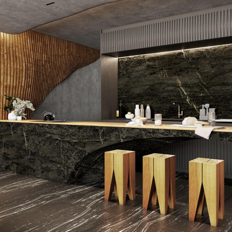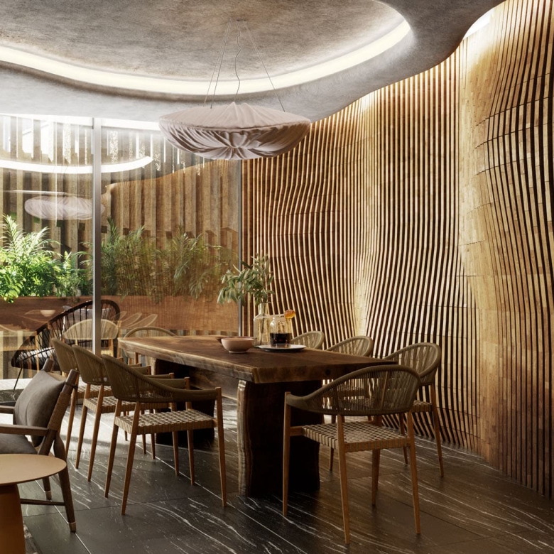Spanning 176 square meters of meticulously designed interior space, the residence features an open-concept layout that maximizes natural light and uninterrupted ocean views. Every detail has been carefully considered, from the fluid curves of the architecture to the refined textures that evoke a sense of harmony with nature. An additional 77 square meters of exterior space provide the perfect setting for outdoor relaxation, with expansive terraces that invite the soothing sounds of the waves and gentle coastal breezes.