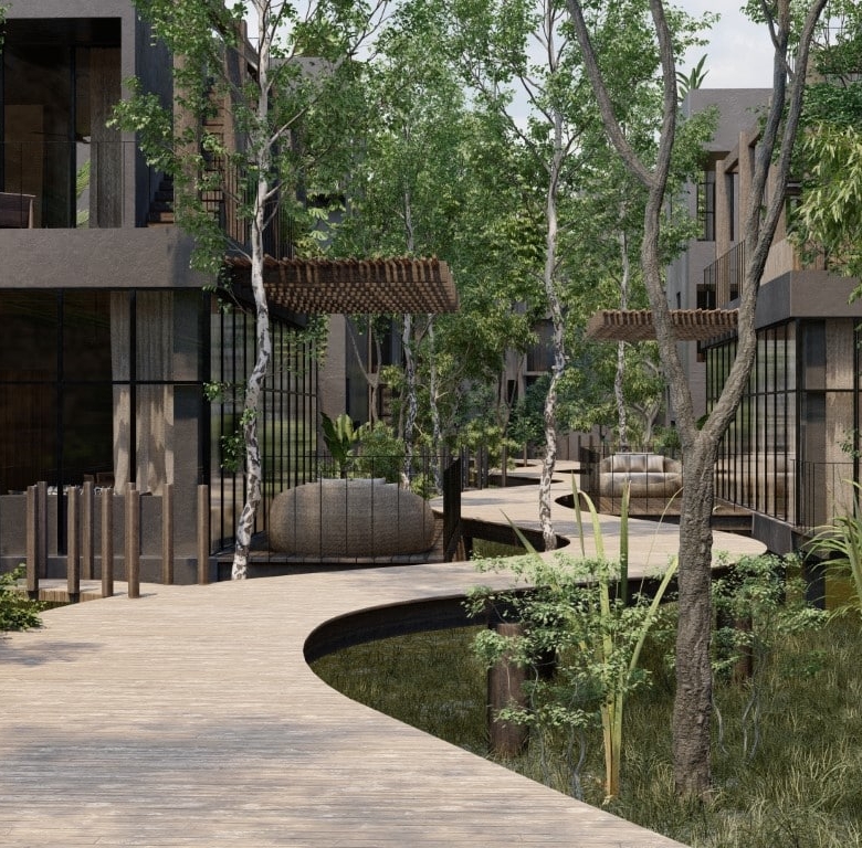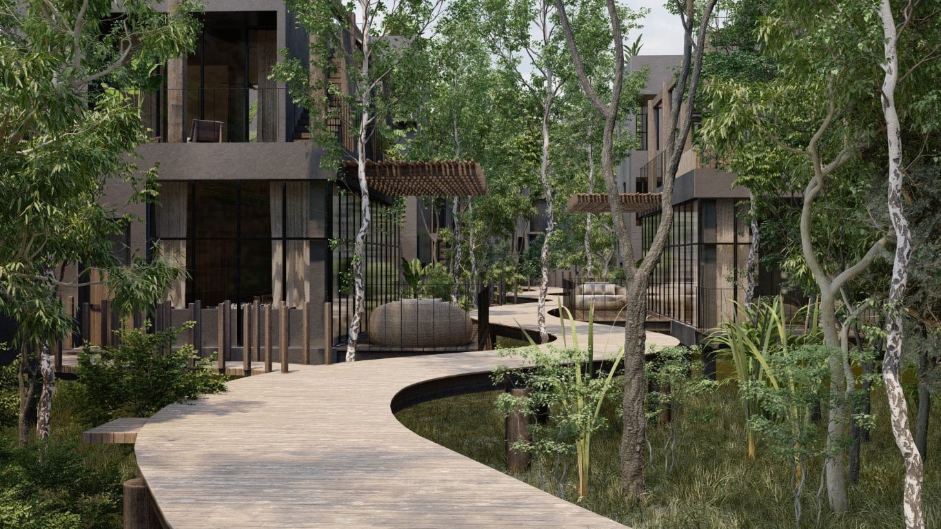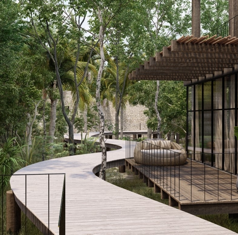 This villa is crafted with expansive spaces and sophisticated finishes. The standout Mangle unit spans 3,191 sq. ft. and features three bedrooms and three bathrooms adorned with elegant chukum finishes. Each villa includes a private rooftop pool and expansive terraces that showcase breathtaking views, creating the perfect environment for relaxation or entertaining. Proximity to Tulum’s pristine beaches and lush mangroves further enhances the property’s charm.