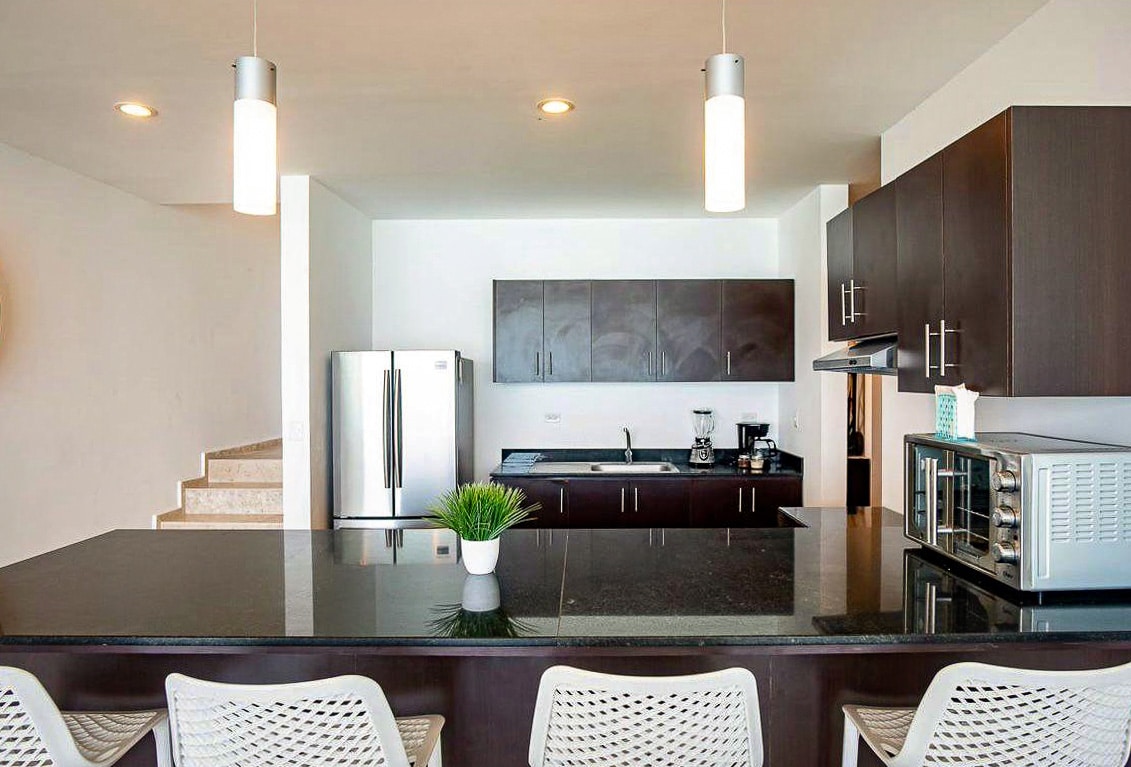 Spanning an impressive 380.15 m² across two thoughtfully designed levels, this fully furnished residence is perfect for those seeking a tranquil coastal retreat or a high-value investment opportunity. On the main floor, you’ll find an open-concept living and dining area that flows seamlessly to a covered terrace, offering breathtaking ocean views. The gourmet kitchen has sleek cabinetry, modern appliances, and elegant finishes, creating a space where functionality meets style. Three spacious bedrooms on this level feature custom walk-in closets and en-suite bathrooms, providing privacy and convenience. Additional features include a guest half-bath, a service room with its own bathroom, a private storage area, and covered parking for two vehicles.