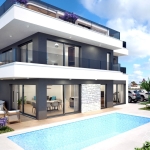 Welcome to a luxury oasis on the magical island of Korčula, where in the village of Žrnovo there are two luxury villas, each with an area of 341 m2 and a beautiful view of the sea and the Pelješac peninsula. These villas, located in close proximity to crystal-clear sea, are a 10-minute drive from the town of Korčula. Their unique design, the result of collaboration with the architectural studio SODA, has been awarded nationally and internationally. This architectural gem has earned numerous awards for its design, including the conceptual design award from S.Arch and the prestigious German Design Award in 2020, highlighting innovation, beauty, and integration with the surrounding landscape. The villas extend over three floors, with a landscaped rooftop area, where on each floor there are carefully designed spaces for relaxation and enjoyment: – The ground floor offers entertainment space, fitness room, sauna, and a fully equipped laundry room. – The first floor features the master bedroom with bathroom, a children's room, an additional bedroom with a double bed, another bathroom, and a toilet. All rooms have a beautiful sea view and access to a wooden terrace with a six-person hot tub, sun loungers, and an outdoor living area. – The second floor includes a living room with a fully equipped kitchen, dining areas with sea views, and a rooftop wooden terrace with a private heated saltwater pool, sun loungers, umbrellas, and a fireplace. The villas are equipped with underfloor heating, Wi-Fi network, fireplace, outdoor grill, fitness room, sauna, jacuzzi, and outdoor pool, and their luxuriously and modernly designed interior and exterior provide everything you need for a comfortable and relaxing stay. The island of Korčula itself offers a rich background of culture, nature, and gastronomy. The villa’s location provides a unique opportunity to participate in the vibrant island life, from exploring historical sites and enjoying local cuisine to socializing with the hospitable community. The crystal-clear sea and lush island landscape offer endless possibilities for exploration and relaxation. Each villa represents more than just accommodation; it is an opportunity to enjoy award-winning design, luxury, and an authentic experience of the island of Korčula, allowing its owners to truly experience the blend of traditional values and modern design. Welcome to your oasis of peace and luxury on Korčula, where every moment becomes part of an unforgettable story. Villa Korčula A – ground floor + 2nd floor + rooftop terrace – living area 341 m2 (3 bedrooms + 3 bathrooms + 3 toilets + wellness zone + gym + pool + rooftop terrace) + garage + outdoor parking space = 1,700,000 EUR Ownership 1/1, free of encumbrances. www.sanpatrik.eu The price for one villa is 1,700,000 EUR, and if both villas are purchased, the price is 3,200,000 EUR. For more details or to schedule a viewing, feel free to contact us. SAN PATRIK PREMIUM STANDARD The property is represented by the boutique agency San Patrik, which provides expert advice and an individual approach to each buyer. Our role is to ensure verified documentation, complete legal security, and a transparent sales process with access to all key information before making a purchase decision.