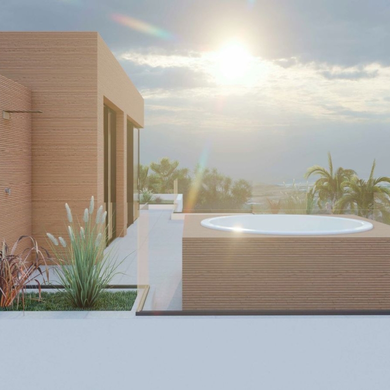 There are two double bedrooms with built-in wardrobes and two full bathrooms. The master bedroom offers direct access to the terrace and has an en-suite bathroom with a jacuzzi.