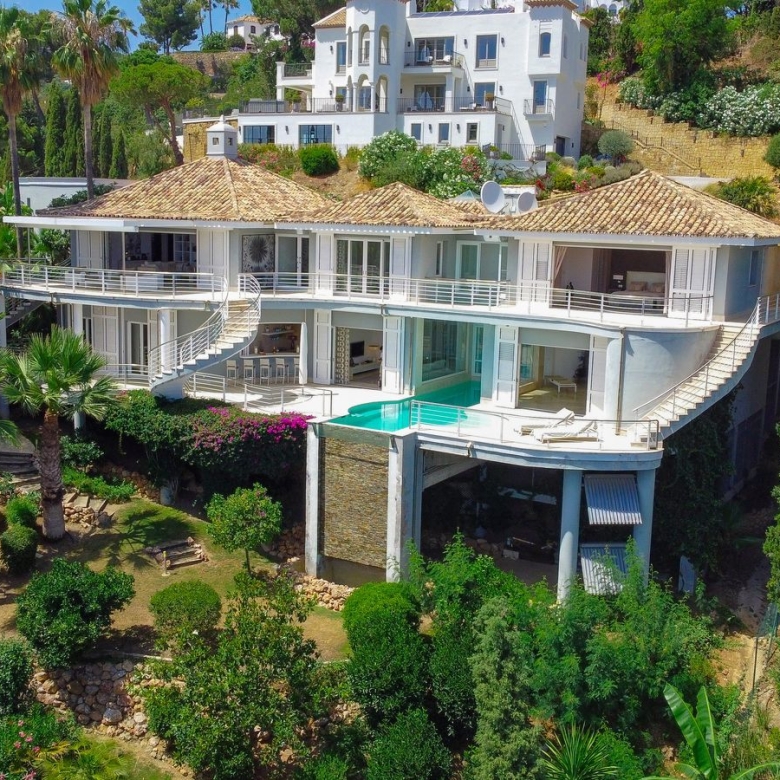 The south-east property offers panoramic views of the sea and the prestigious Finca Cortesin golf course.