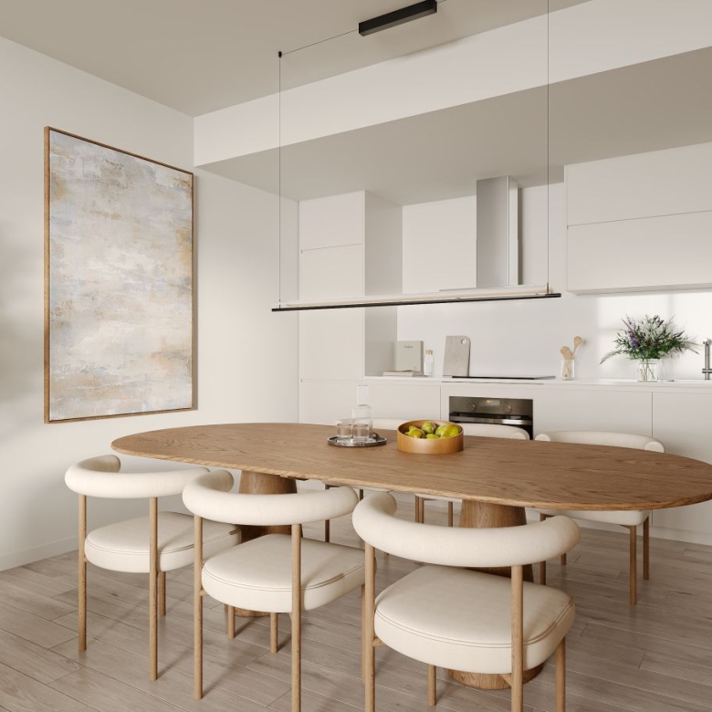 • Large living-dining area with direct access to a lovely terrace offering open views of the natural surroundings, trees, and green areas