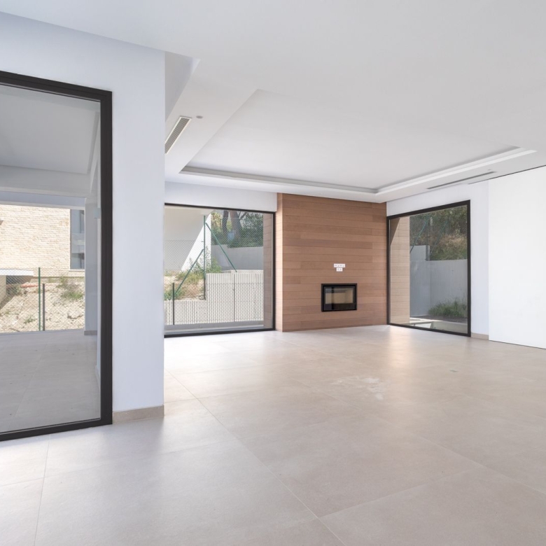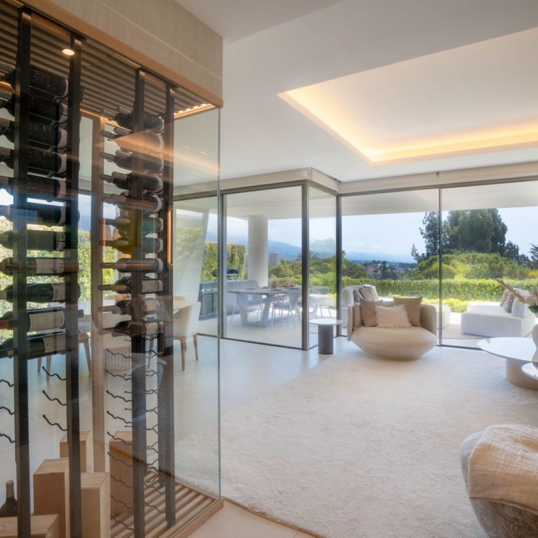 Luxurious four bedroom middlefloor apartment for sale in this exclusive seafront resort offers a contemporary design, ample interior spaces with views out into the Mediterranean through enormous windows, and extensive terraces with private pools. The use of high-quality materials and cutting-edge technology make this development a real gem. All the homes come with at least two large garage spaces and one storeroom.