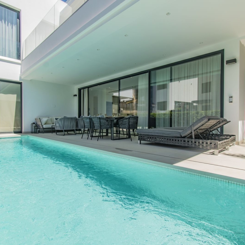 An inviting 12m² terrace, equiped with top quality lounger seating and dining table and chairs, perfect for enjoying the Mediterranean climate all year round.