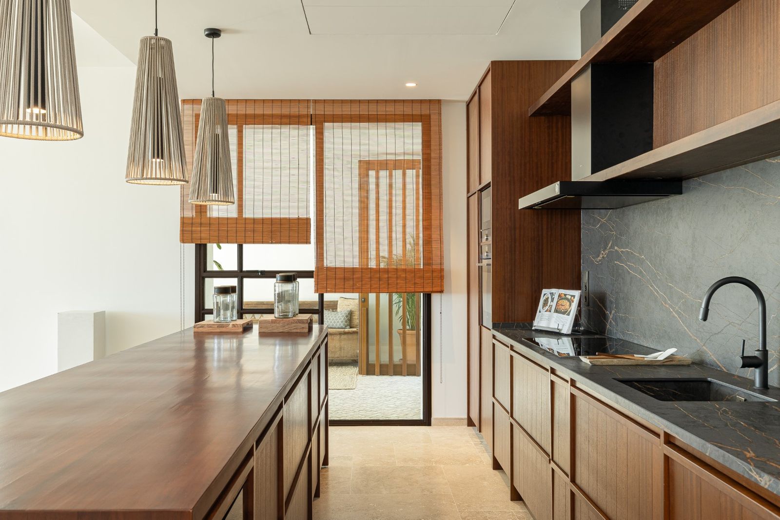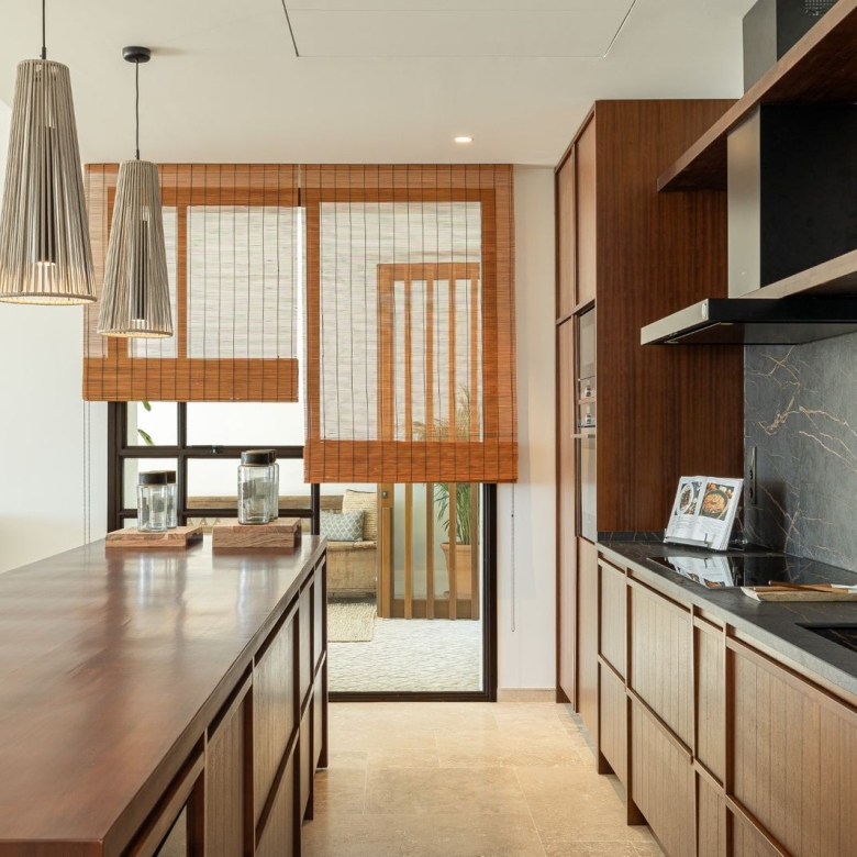 Recently updated and fully integrated kitchen with amazing sea views from the good sized terrace.
