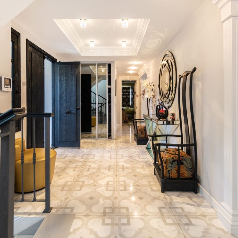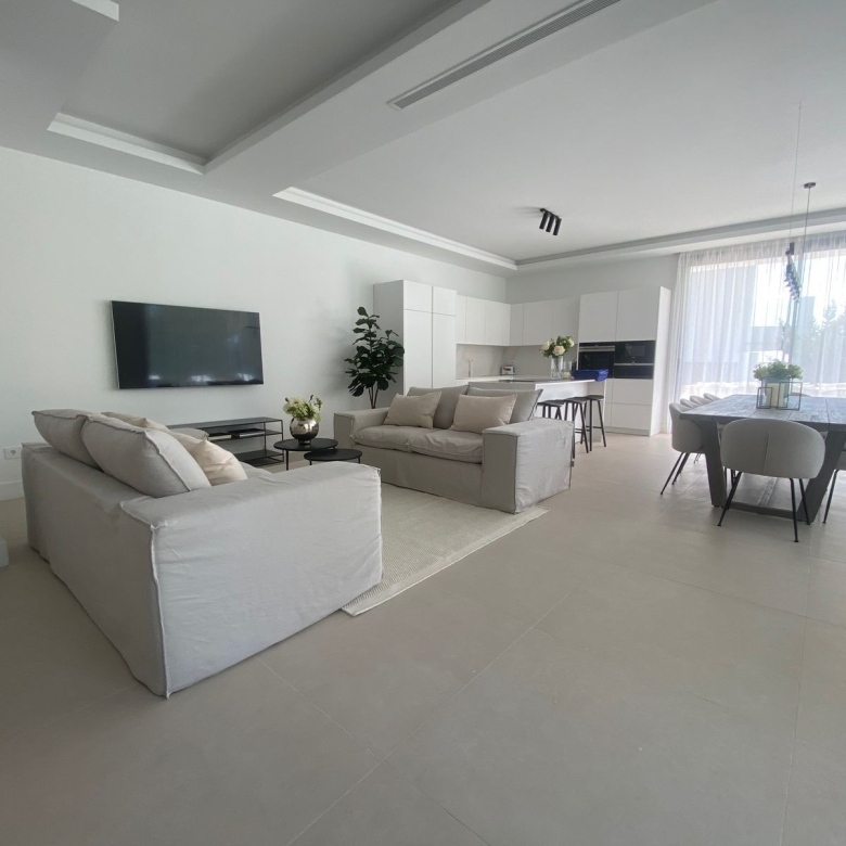 It has undergone a complete renovation, including all electrical and plumbing installations. The walls have been plastered, and the kitchen has been integrated into the living room. All switches and sockets are made of new-generation glass. The blinds are automated and remote-controlled. High-end appliances and electronics (washing machine, refrigerator, dishwasher, induction cooktop, oven, refrigerator). The furniture and decorations are also high-quality. The kitchen has been designed for convenient use. The air conditioning is internal. The intercom can be opened via an app, and the door can be opened with a key or code.