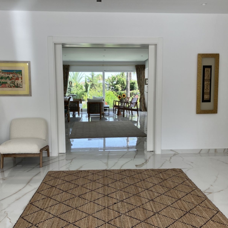 The apartment features a practical and comfortable layout: two bedrooms with built-in wardrobes, a full bathroom, an additional guest toilet, and a separate kitchen with a utility/laundry room. There is also the possibility of opening the kitchen to the living room or integrating it with the utility area to create a more modern, open-plan space. The marble flooring and the overall good condition of the property make it ready to move into, with the option to update to your taste.