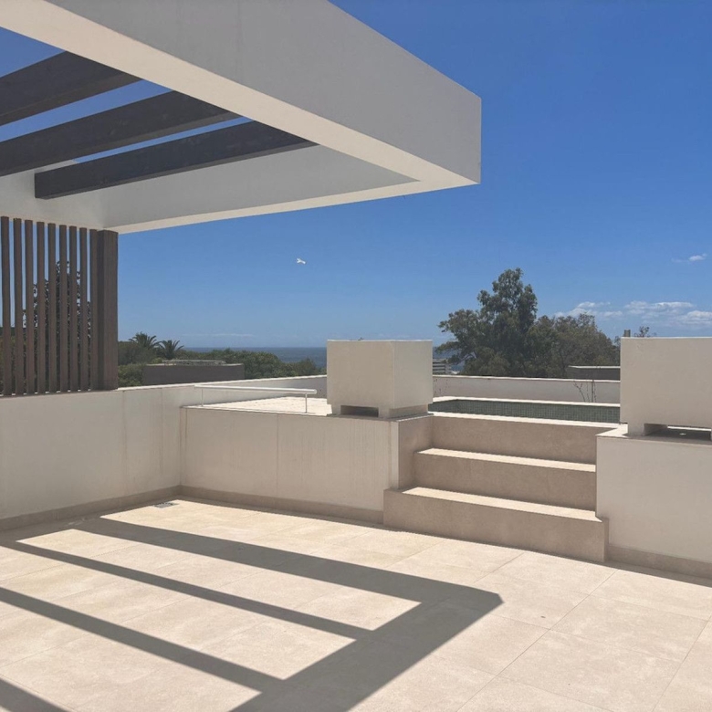 This luxurious first-floor apartment has undergone a high-quality renovation and is ready for immediate occupation. Spacious and ultra-modern, the apartment is situated within a sought-after beachfront complex in Reserva de Los Monteros, known for its prime location, 24-hour security, lush tropical gardens, and two communal swimming pools. Facing west and offering 150m² of living space, the apartment features an expansive living and dining area, an open-plan kitchen, and a TV lounge, all leading to a generous 40m² terrace. Each of the three bedrooms is roomy, with the master suite boasting an en-suite bathroom, and all bedrooms have large windows with direct outdoor access. Additional highlights include a second bathroom, guest toilet, laundry area, hot and cold air-conditioning, underfloor heating in the bathrooms, a parking space, and a storage room. This apartment provides an exceptional setting for year-round beachside living in a quiet, secure environment ideal for families. Nearby, enjoy various beach bars and clubs such as then highly regarded “Trocadero Arena” or walk along the promenade to Marbella's centre. Several golf courses and Marbella’s town centre are only a short drive away.