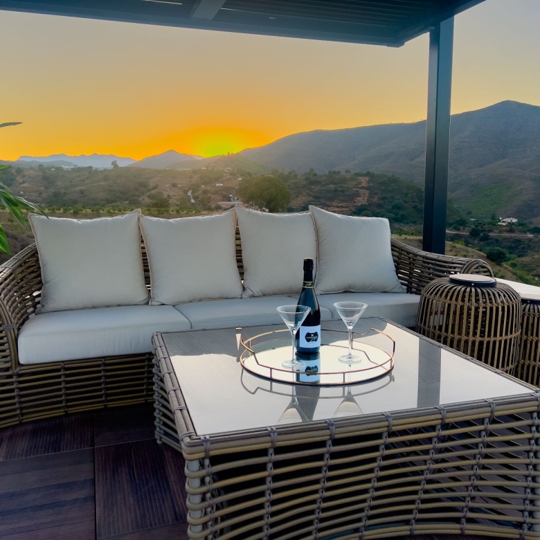 Stunning Pool Area: Relax in a serene swimming pool area with breathtaking mountain and sunset views.