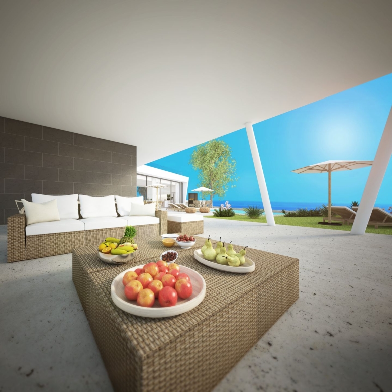 The lounge enjoys panoramic views over the coastline, sea and La Ermita, with large patio doors leading out to the good sized balcony which has an awning for shade in the hottest days. There is also a small outside storage area here.