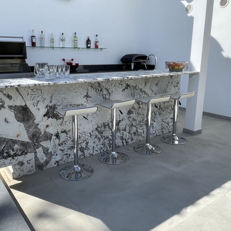 The residence features 3 elegant bedrooms, each with its own en-suite bathroom and finished to the highest standards, creating a sense of refined comfort throughout. The spacious living areas are enhanced by top-quality materials, tasteful furnishings, and floor-to-ceiling sliding doors that lead to a generous private terrace with the direct sea view — the ideal space to enjoy breathtaking views of the Mediterranean, entertain guests, or simply relax in absolute peace.