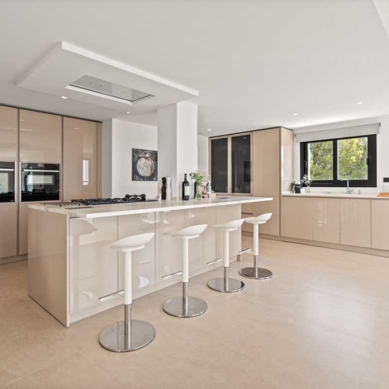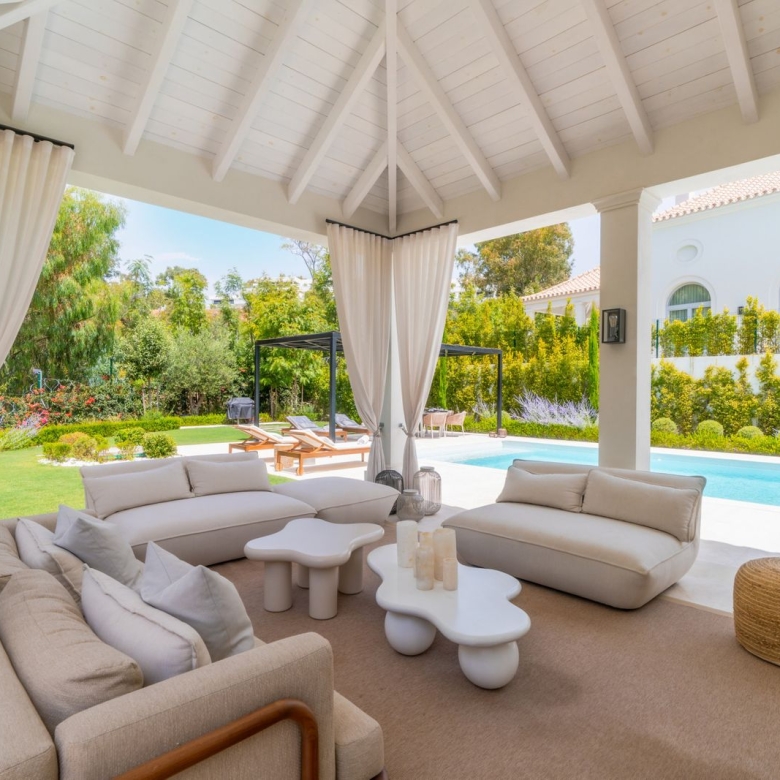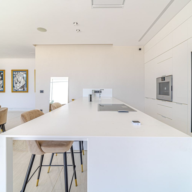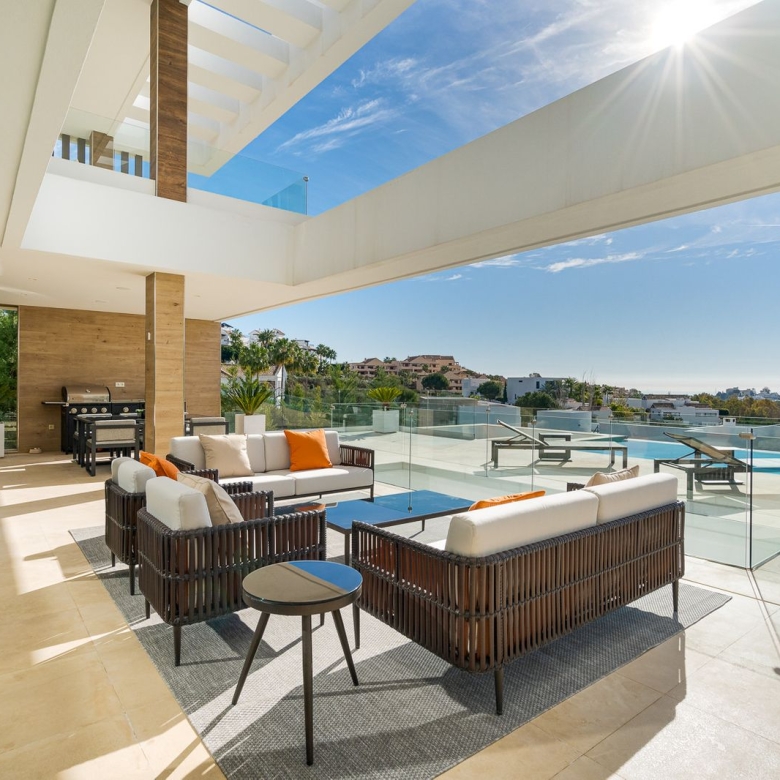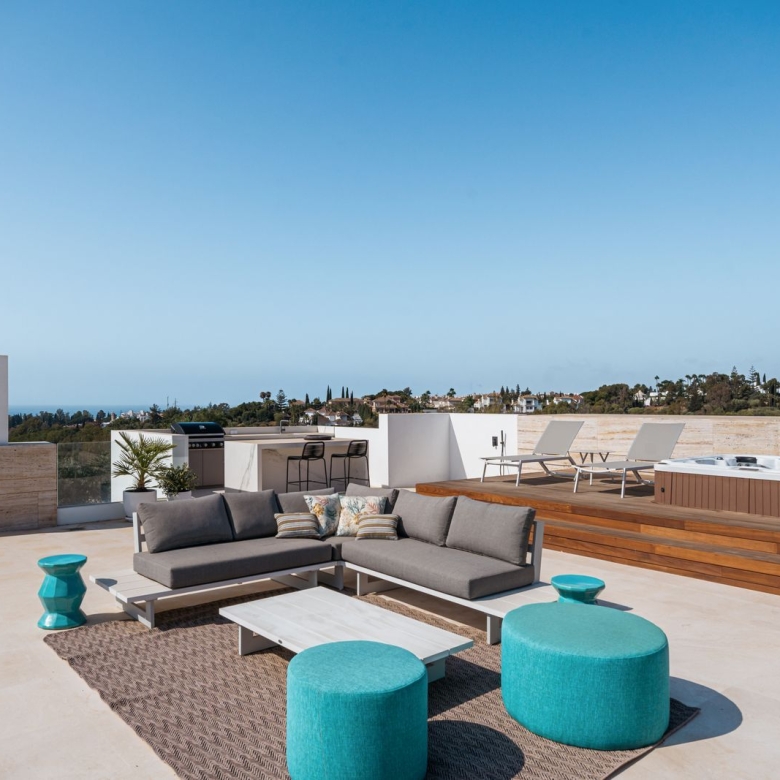 This exclusive 3-bedroom apartment is located in one of the most sought-after residential areas on the sea side, next to Puerto Banús. The apartment has three bedrooms, each with en suite bathrooms, a fully equipped kitchen and a spacious living and dining room. The spacious terrace surrounds the entire apartment and offers magnificent views of the well-maintained garden and the sea.
