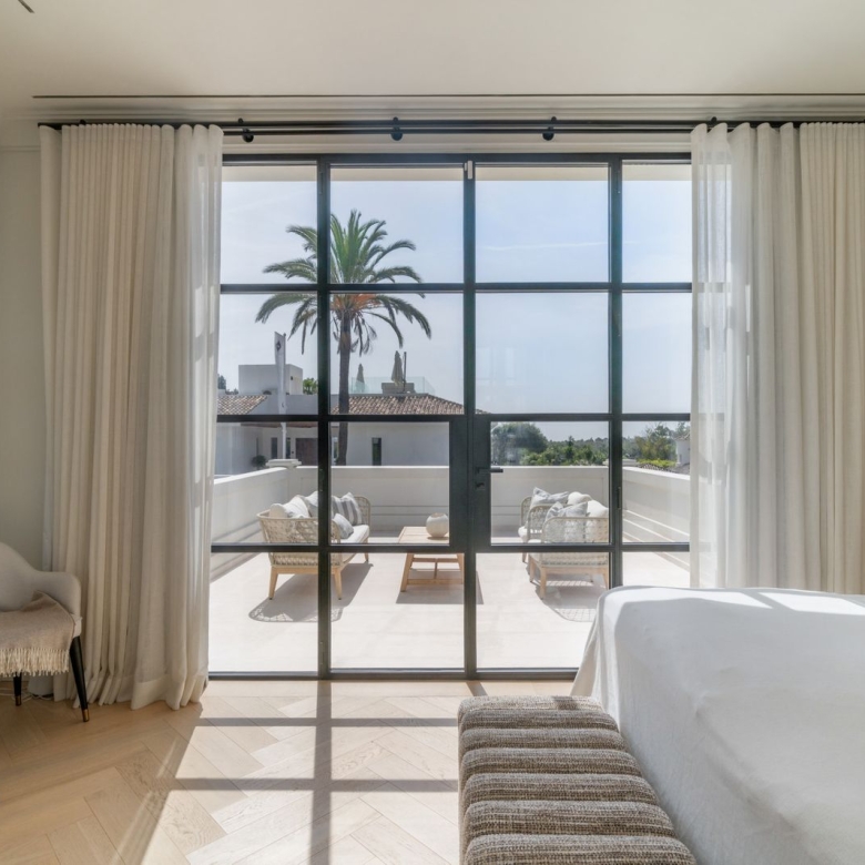 Each of the guests' bedrooms has a unique approach to interior design, while also maximising comfort. All bathrooms are equipped with 1st quality taps and towel heaters. The master bedroom is the centrepiece, exuding luxury with a stunning design and finishings. The living area and master bedroom have direct access to the terrace that caters to an outdoor dining and lounge area. The terrace enjoys views to the resort, as well as plenty of sunshine throughout the day. Datura 1 offers convenient access to the Golden Mile, its amenities and the beach, allowing residents to fully immerse themselves in what Marbella has to offer.