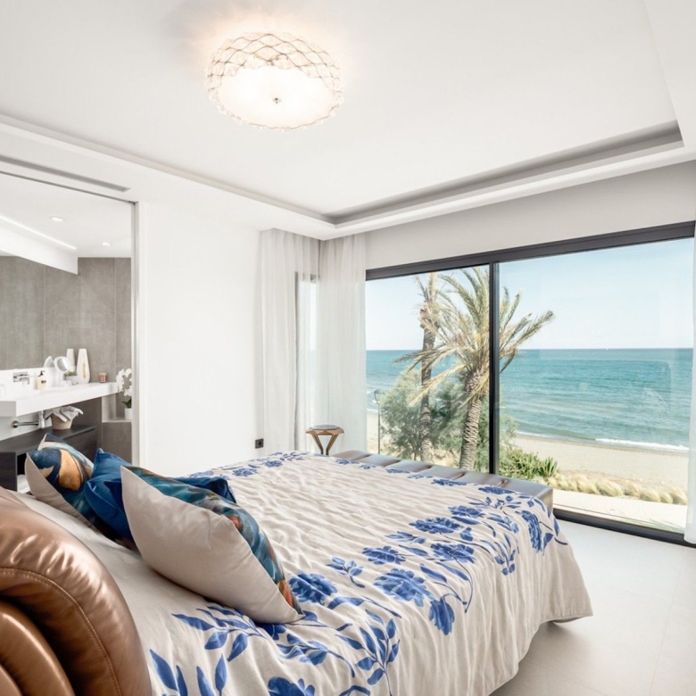 This magnificent south-facing apartment with panoramic sea views is for sale in front of the beach in Torrenueva (Mijas Costa), walking distance to Bombo beach in La Cala de Mijas!