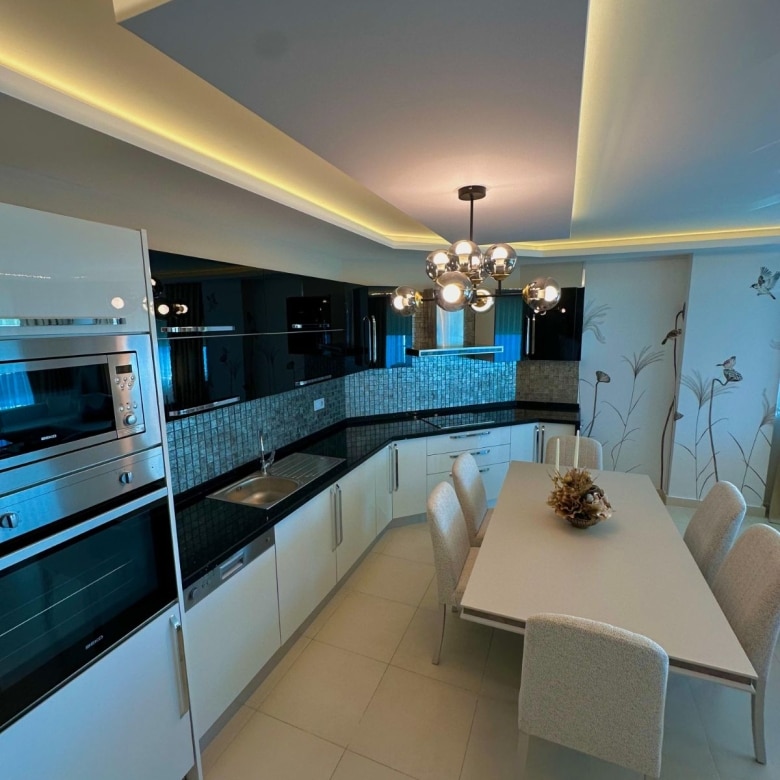 Step inside to find an expansive 135 m² living space, meticulously designed to offer both functionality and elegance. The property features a spacious 2+1 layout complemented by a dedicated dressing room, ensuring ample storage and a seamless living experience. Located on the 4th floor, the apartment boasts a south-east orientation, allowing you to bask in the warm glow of the morning sun from your large private balcony.