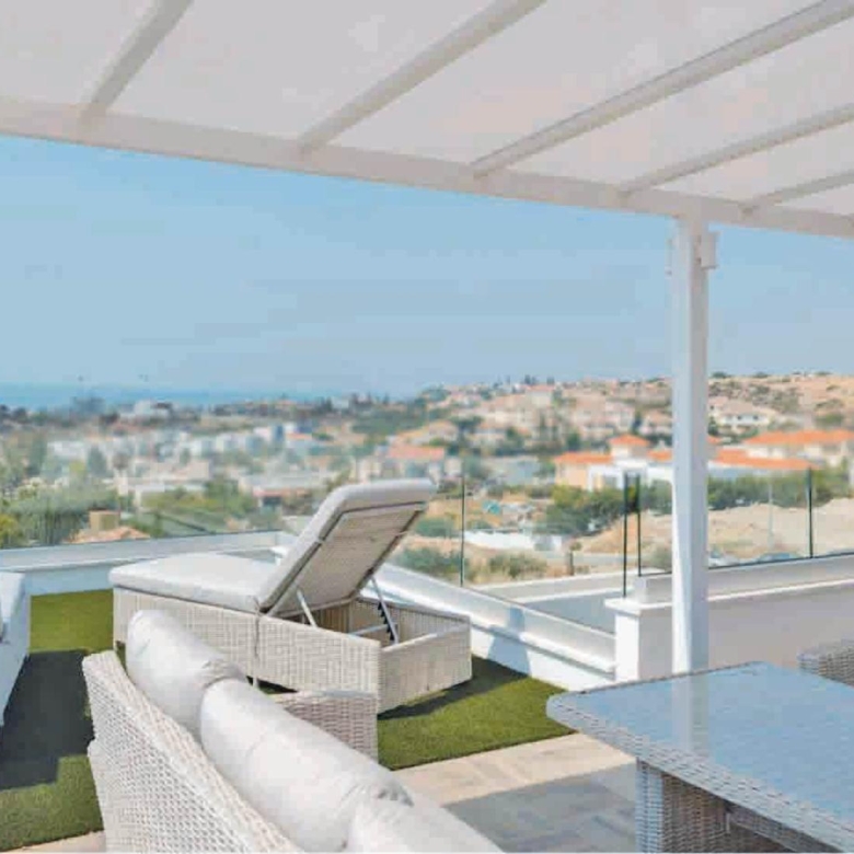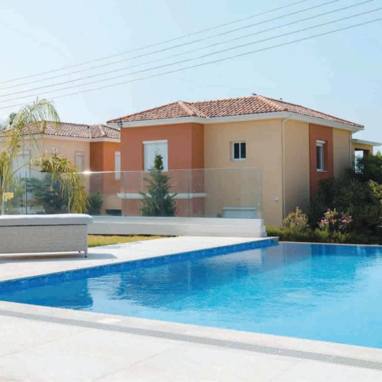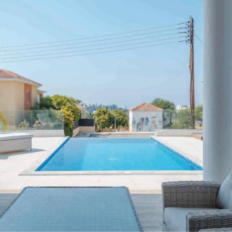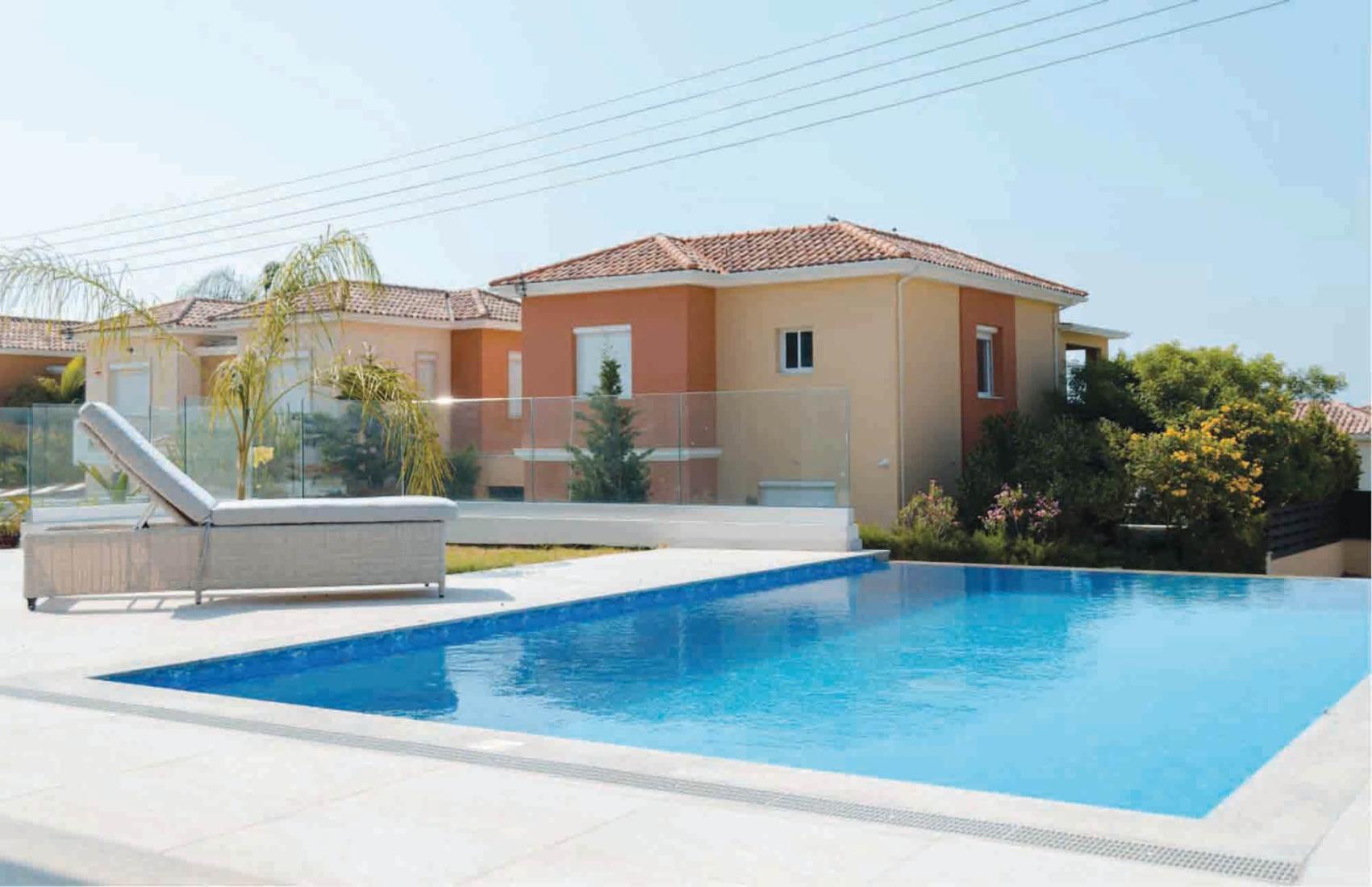 These gorgeous villas are located high up in Moutayiaka, a quiet residential area, just a 10-minute drive to the coast, with easy access to the downtown areas and the highway. Designed in the modern cubist style, these splendid detached houses aesthetically complement each other, yet each is uniquely different. Each house includes spacious bedrooms, luxurious en-suite and bathrooms, a huge living area, and a covered sun terrace and first-floor balcony. Outside, there is a beautiful secluded swimming pool surrounded by landscaped gardens, and owners will enjoy the pleasures of the summer barbecue area. There is also secure, off-road covered parking.