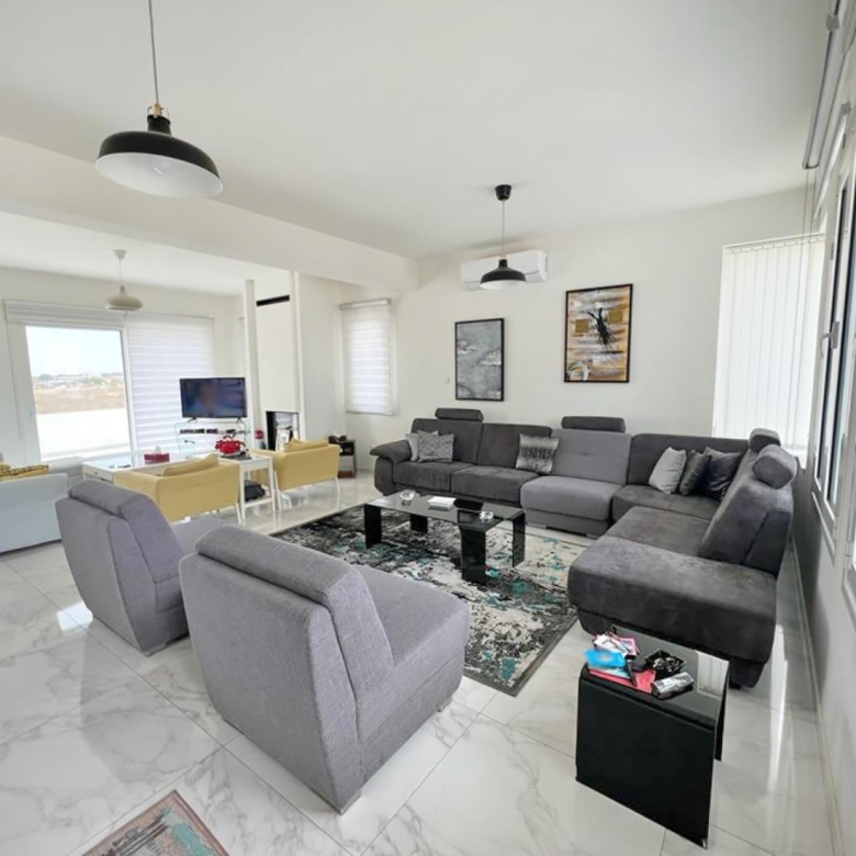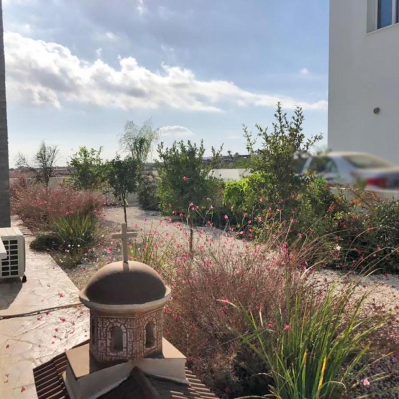 This four bedroom detached villa located on the outskirts of Paralimni, just a 5-minute drive to the sandy beaches of Capparis and close to the amenities and schools, with easy access to both Protaras and Ayia Napa Town. This impressive property is situated in a privileged position on a private complex of 5 villas. The ground floor comprises a modern lounge and dining area, fully fitted kitchen with granite work tops, guest wc with a shower and a covered garage which has been converted to a storage room. Leading up to the first floor there are 4 generous sized bedrooms with fitted wardrobes and a family bathroom. The master bedroom has its own en-suite. Three of the bedrooms have private veranda offering views of the surrounding area. The garden offers plenty of privacy for outside relaxation and entertaining. Furthermore, there is room for an optional swimming pool. Both ground and first floor offer nice and clear sea views.