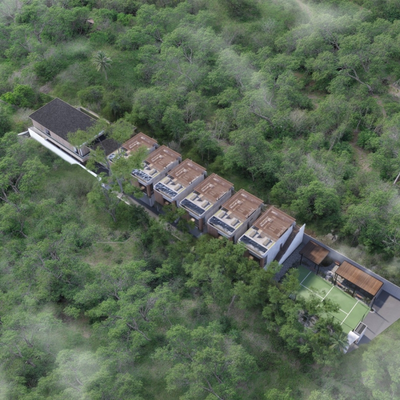 • Type D: 295 m2, 4 bedrooms (2 master suites), 5 baths, private pool & patio, second rooftop pool with second kitchen, ocean views, – IDR 10.450.000.000