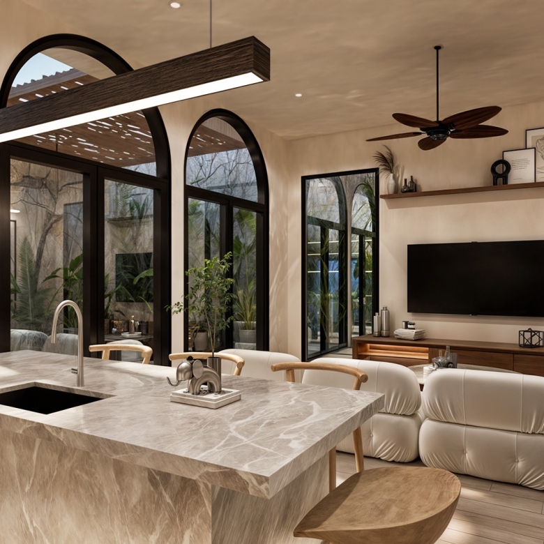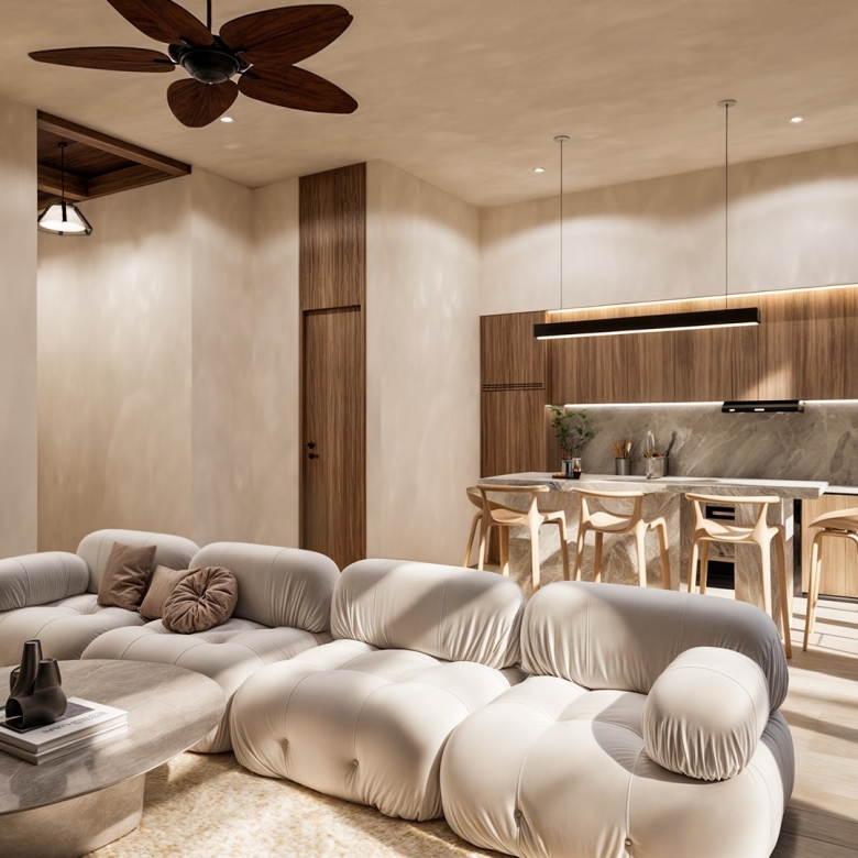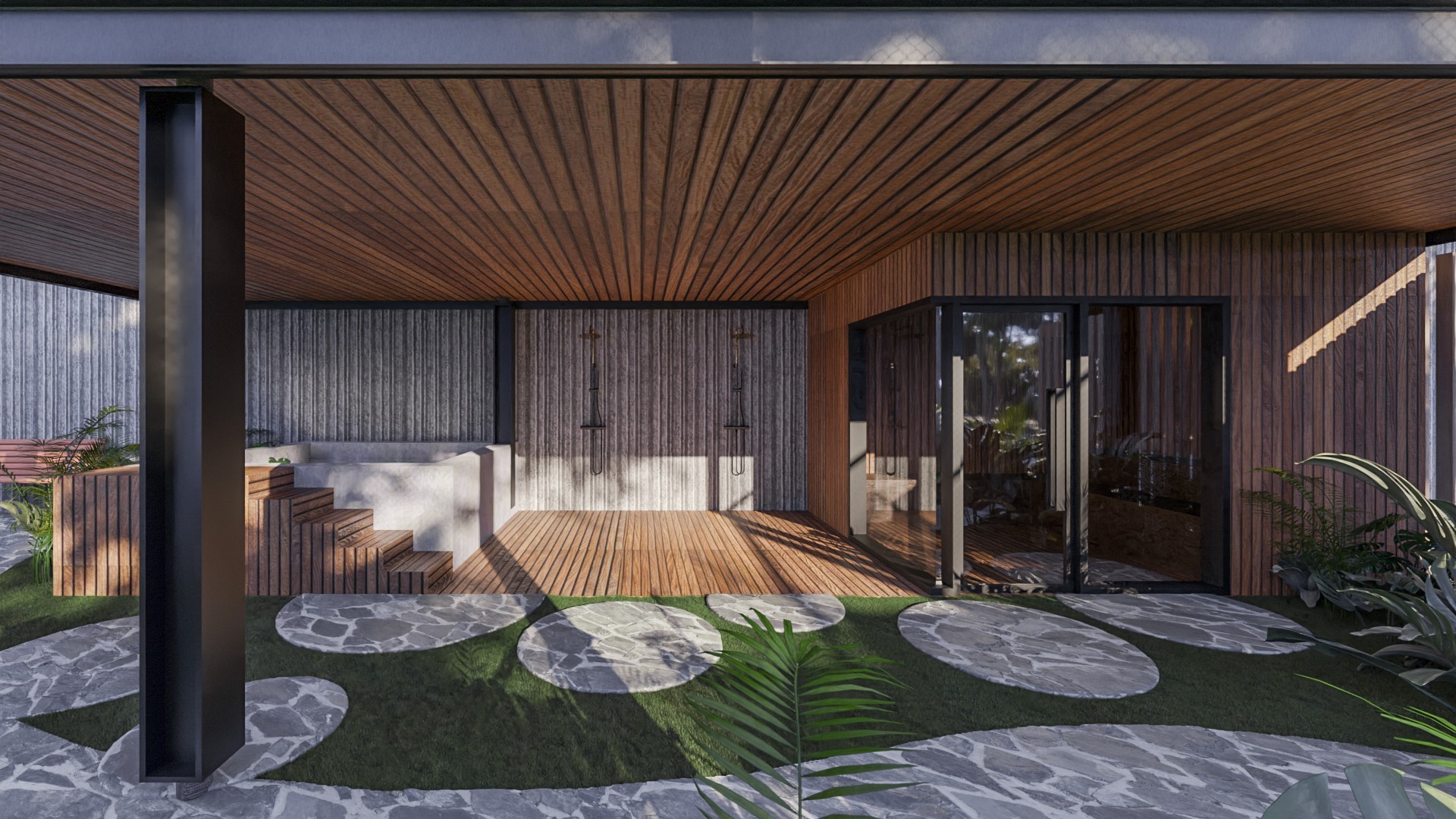 • Type C: 295 m2, 3 bedrooms (2 master suites), 4 baths, private pool and patio, rooftop pool with second kitchen, ocean views, – IDR 9.650.000.000