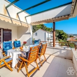In a unique location in Mošćenička Draga, on an elevated cliff with an open view of the sea and the island of Cres, a newly built luxury villa in Mediterranean style is for sale. It is located a few minutes' walk from the beach and offers complete privacy and a peaceful environment, ideal for family living or vacation. The villa is 11 kilometers from Opatija, which is approximately a twenty-minute drive by car. Layout and interior The villa extends over two floors. On the ground floor, there is a spacious open-concept living room with kitchen and dining area, connected to a large terrace, one bedroom with a bathroom, a wardrobe, and a guest toilet. On the upper floor, there are three bedrooms, each with its own bathroom and south-facing balconies with panoramic sea views. The interior is furnished with custom-made handmade furniture, never used, featuring luxurious microcement and underfloor heating in all rooms. Garden and additional amenities The landscaped garden, paved with stone and enriched with Mediterranean greenery, includes a swimming pool and jacuzzi, sunbathing area, outdoor kitchen with barbecue space, and a sauna with a sea view. The villa is equipped with a heat pump, fan coil system, alarm system, and video surveillance. About Mošćenička Draga Mošćenička Draga is a picturesque fishing village at the foot of the medieval town of Mošćenice, situated between the mountain and the sea. It is known for its pebble beaches, crystal-clear sea, and romantic coastal promenades. The area is very hilly and includes part of the Učka Nature Park, offering numerous opportunities for hiking, cycling, and enjoying nature. With its Mediterranean atmosphere and rich history, the place also offers quality tourist infrastructure with hotels, restaurants, taverns, diving centers, and all necessary amenities for comfortable living or vacation. Villa MD – ground floor + upper floor – living area 200.00 m2 (4 bedrooms + 4 bathrooms + 1 WC) + 3 terraces + pool with sunbathing area + garden + outdoor parking spaces, on a plot of 727 m2 = 1,500,000 EUR (including furniture) SAN PATRIK PREMIUM STANDARD The property is represented by the boutique agency San Patrik, which provides expert advice and an individual approach to each buyer. Our role is to ensure verified documentation, complete legal security, and a transparent sales process with access to all key information before making a purchase decision.