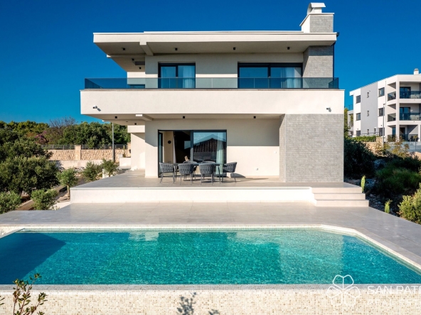 In a quiet area of Šibenik, just 5 minutes from the city, a modern single-story house built in 2021 is for sale, with a surface area of 142 m2, situated on a land plot of 925 m2. The house consists of three bedrooms, a bathroom, an additional WC with laundry, and an open space living room with kitchen and dining area, which leads out to a spacious covered terrace (approx. 31 m2). The location on a gentle elevation and good orientation ensure plenty of natural light, an open view, and a high level of privacy. The equipment includes underfloor heating in the main rooms, air conditioning in all rooms, a solar system for hot water, and quality joinery. The landscaped yard offers the possibility of additional amenities such as a pool or lounge area, and multiple parking spaces are secured, including covered parking. The sea in Bilice is 4.5 km away, and the Banj beach in Šibenik is 5 km away. Nearby is the Krka National Park, while the highway and airports provide good traffic connections throughout the year. The property is used for tourist rental with good results, making it suitable as an investment as well. For additional information and viewing appointments, we are at your disposal. SAN PATRIK PREMIUM STANDARD This property is represented by the boutique agency San Patrik, delivering expert guidance and a highly personalized approach to every buyer. Our role is to ensure fully verified documentation, complete legal certainty, and a clear, transparent transaction process, giving clients access to all essential information before making a purchase decision.