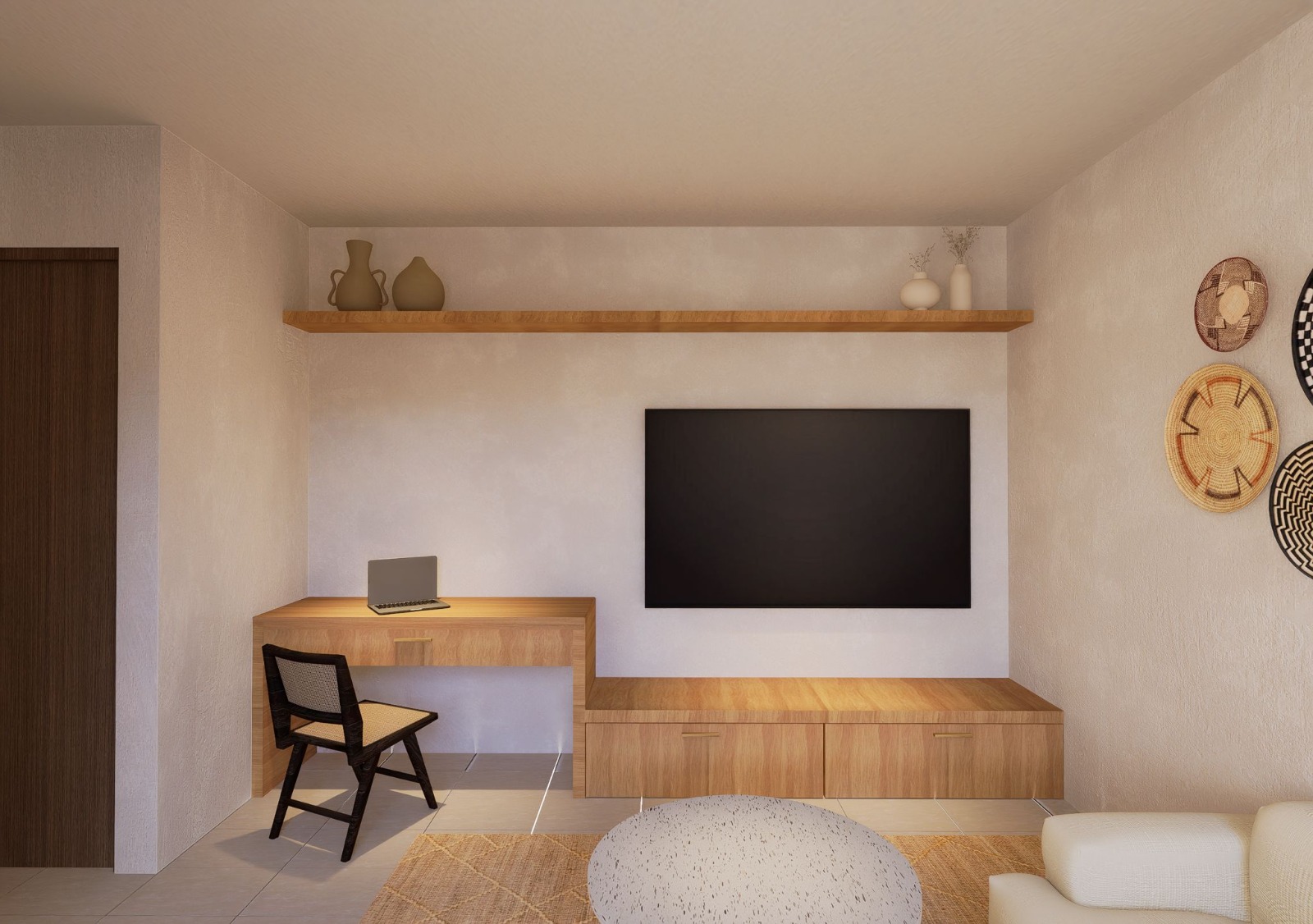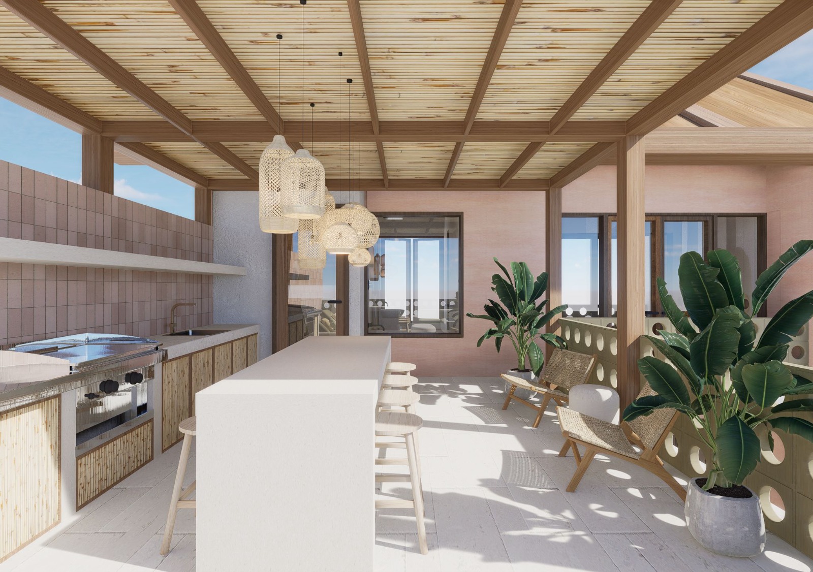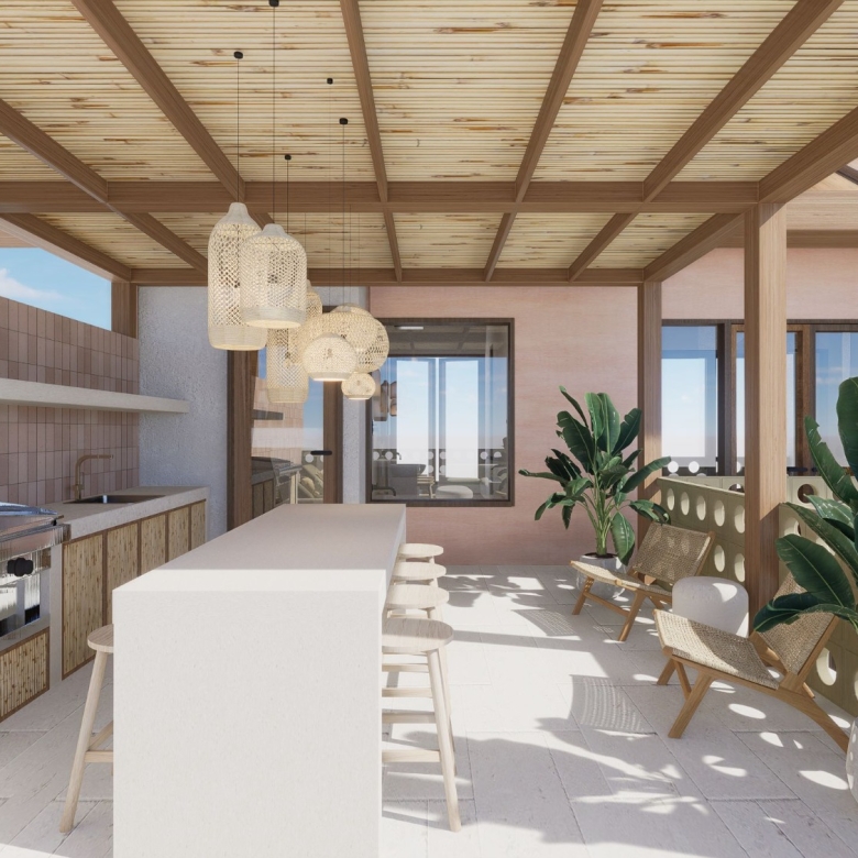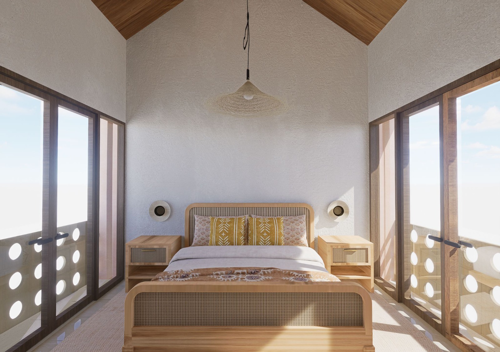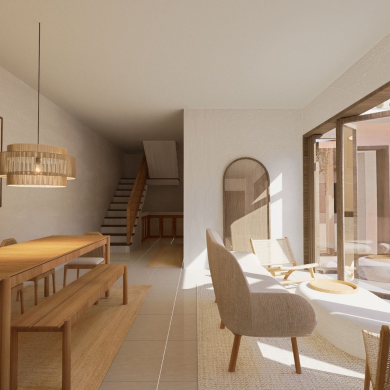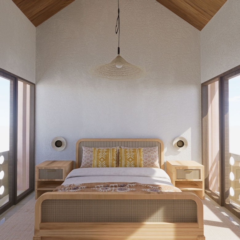 The villa is constructed using top-notch materials for a durable and stylish finish. The decking and exposed hood are crafted from ironwood, known for its strength and weather resistance, making it perfect for tropical climates. Bengkirai oven is used for the frame and door leaf, adding a layer of warmth and natural beauty to the overall design.