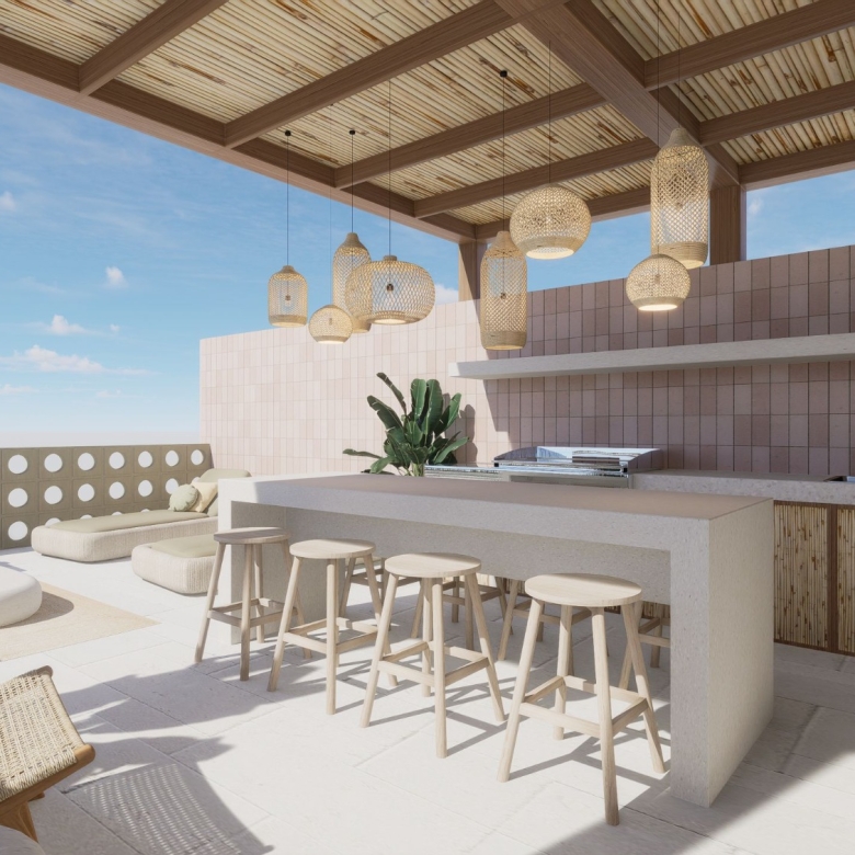 The villa’s three-floor design maximizes the space and allows for stunning views from the rooftop entertainment area. Equipped with a BBQ area, this rooftop space is perfect for hosting gatherings or simply enjoying Bali’s tropical evenings.