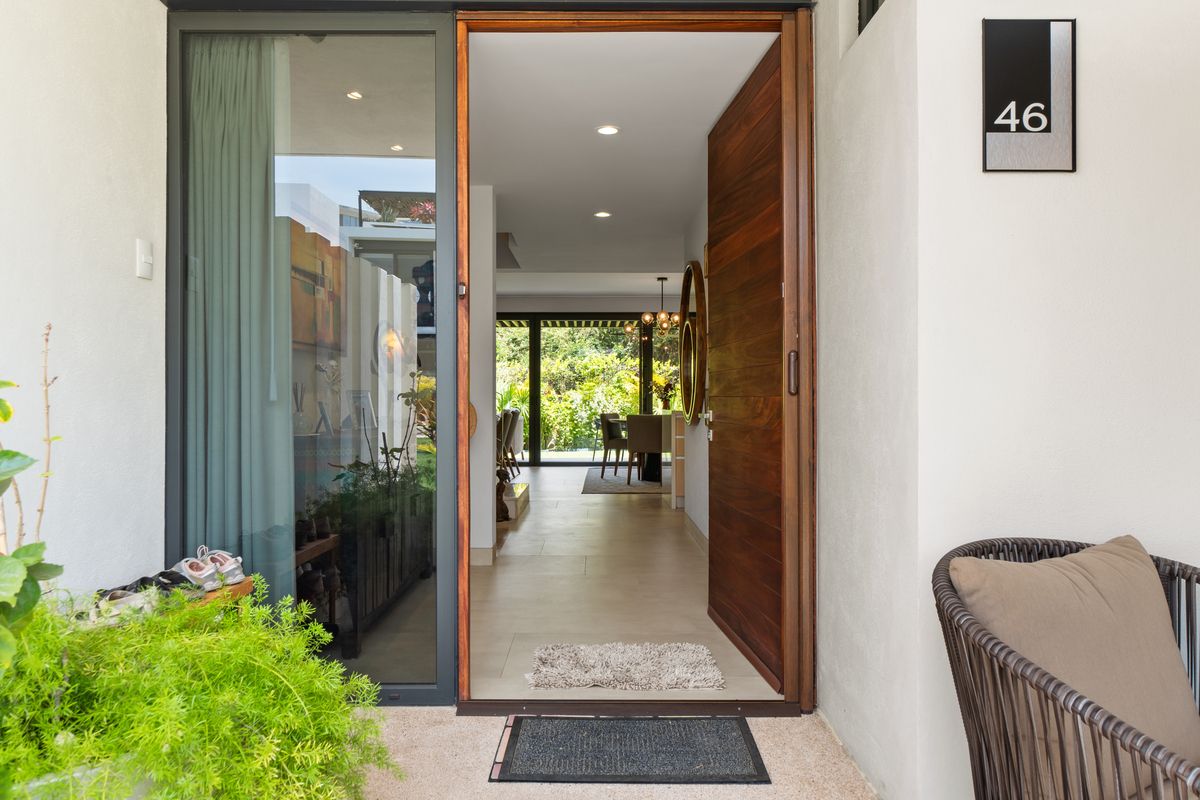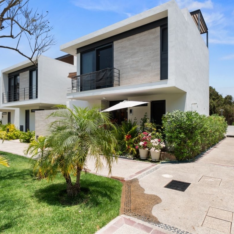 Vista Natura 46 is a luminous and furnished corner house with 3 bedrooms and 4 bathrooms, ready to live, located in a new development within a closed community in Nuevo Vallarta, just a few steps from the beach.