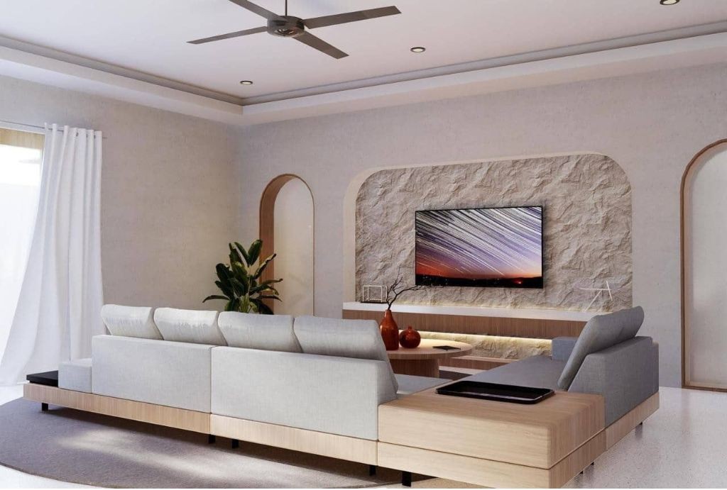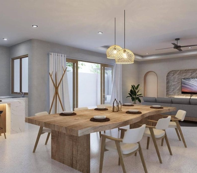 Set on 228 square meters of land with a two-story design, the villa is nearing completion, with 80% of construction already completed. The spacious 350-square-meter layout hosts three well-appointed bedrooms and three bathrooms, each featuring high-quality fixtures including a bathtub, rain shower, and sleek sink. The living and dining areas are designed for open-plan comfort, with ample space to relax and entertain. Adjacent to the main living area, the 3×7 meter private swimming pool is perfect for cooling off or unwinding by the water.